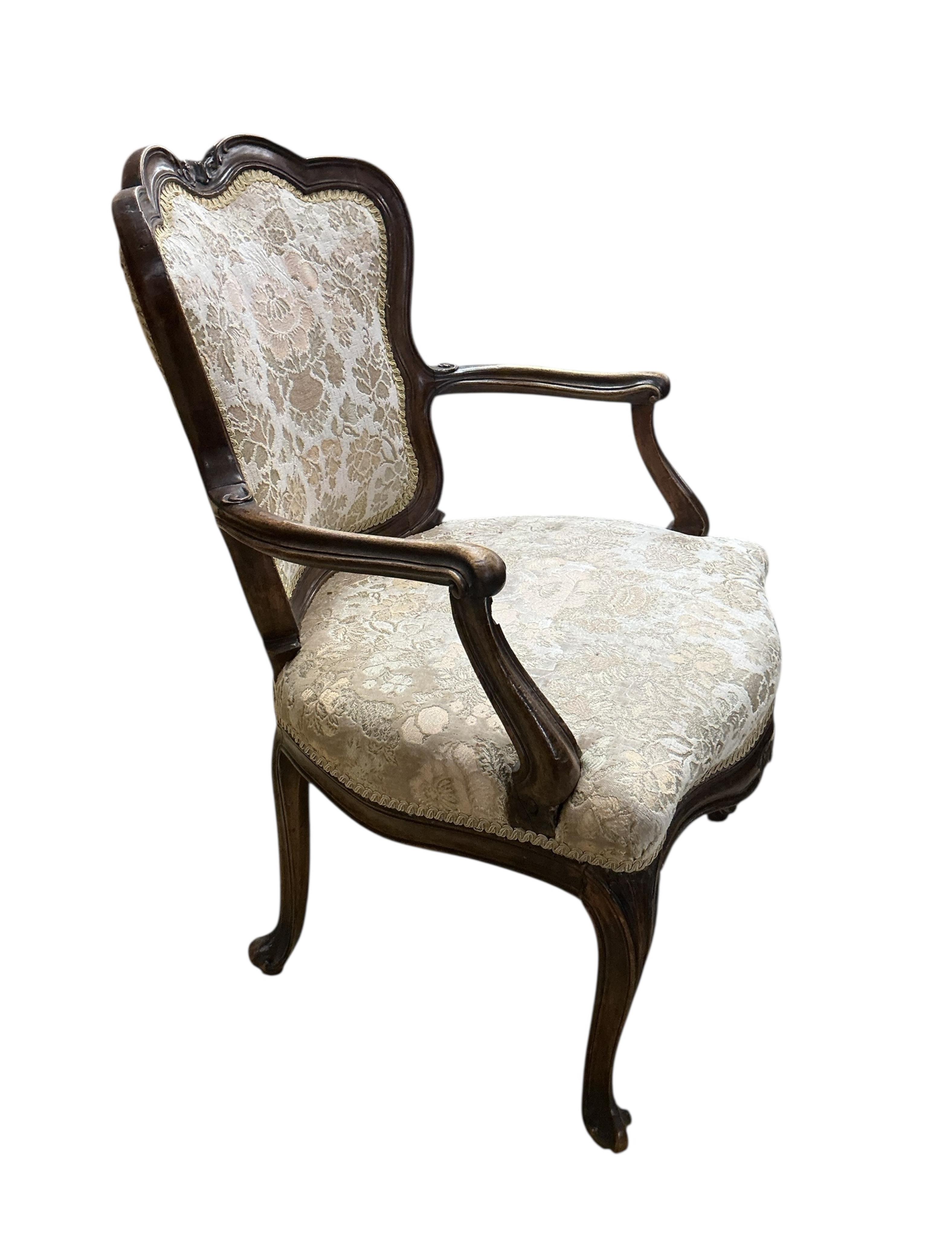 Lot 1078 , An 18th century French upholstered open arm chair, width 59cm, depth 50cm, height 87cm