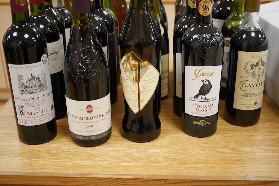 A collection of twenty four various bottles of wine to include Chateau Neuf Du Pape, 2001