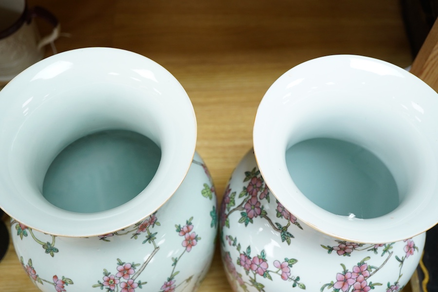 Lot 375 , A pair of Chinese famille rose baluster vases decorated with flowers, 36cm high