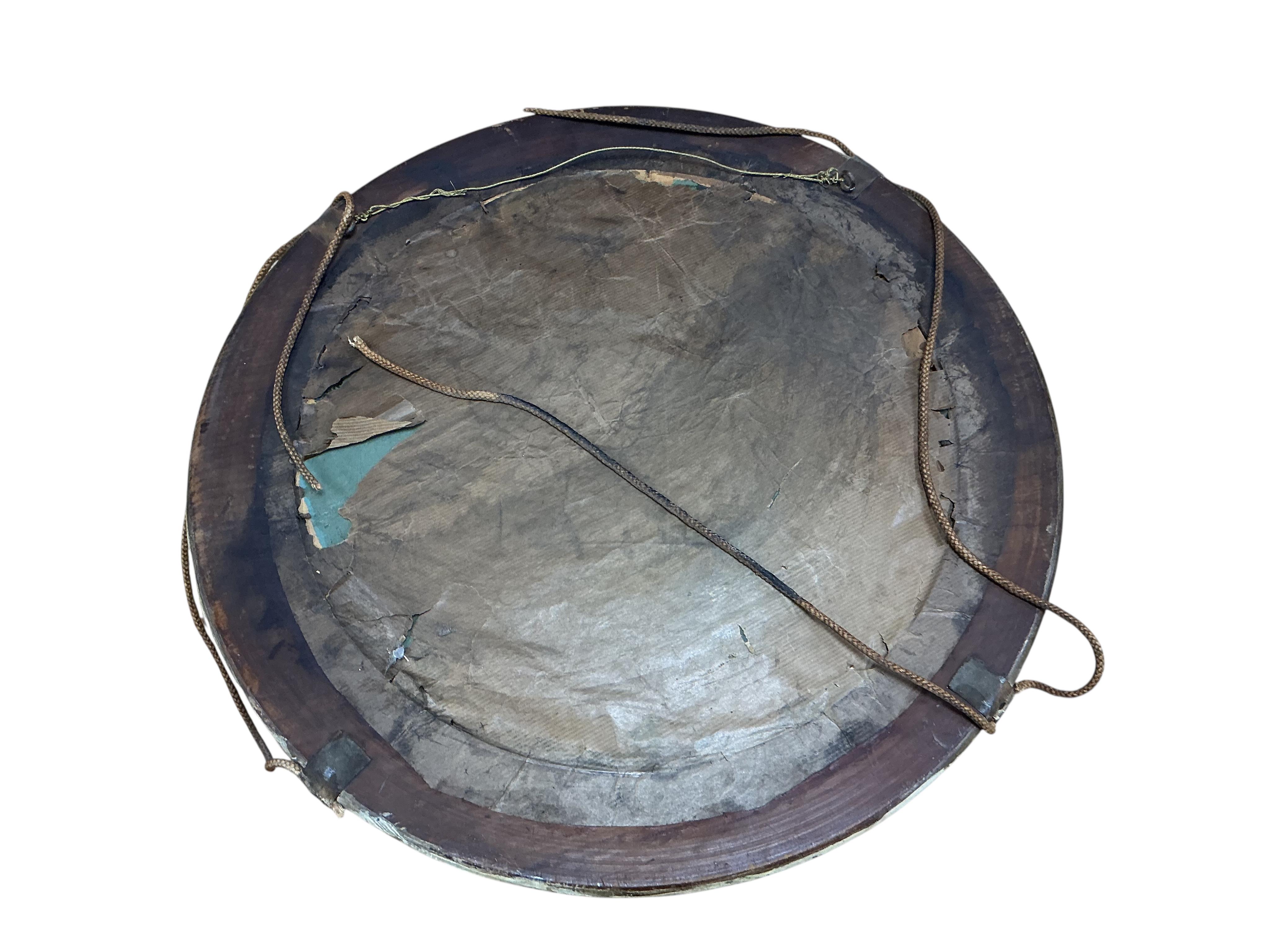 A photographic portrait of a gentleman, contained within a painted circular frame designed as a ship’s life ring, the decoration reading; R.M.S Rimutaka London, with the Merchant Navy flag to one side and the New Zealand Shipping Company flag to the other, diameter of frame 45cm