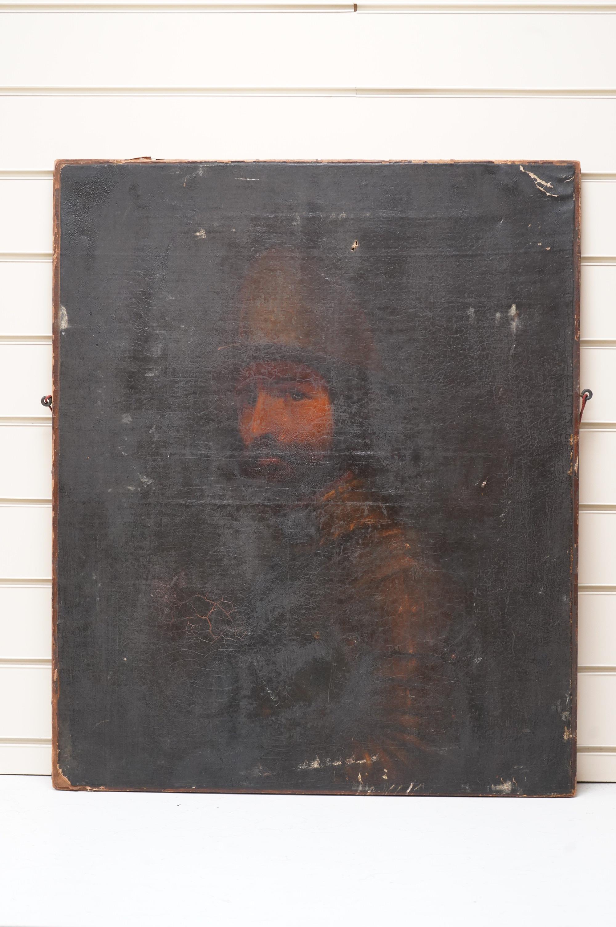 Continental school, 18th century, Portrait of a gentleman in armour, oil on canvas, relined, unframed, 76 x 63cm