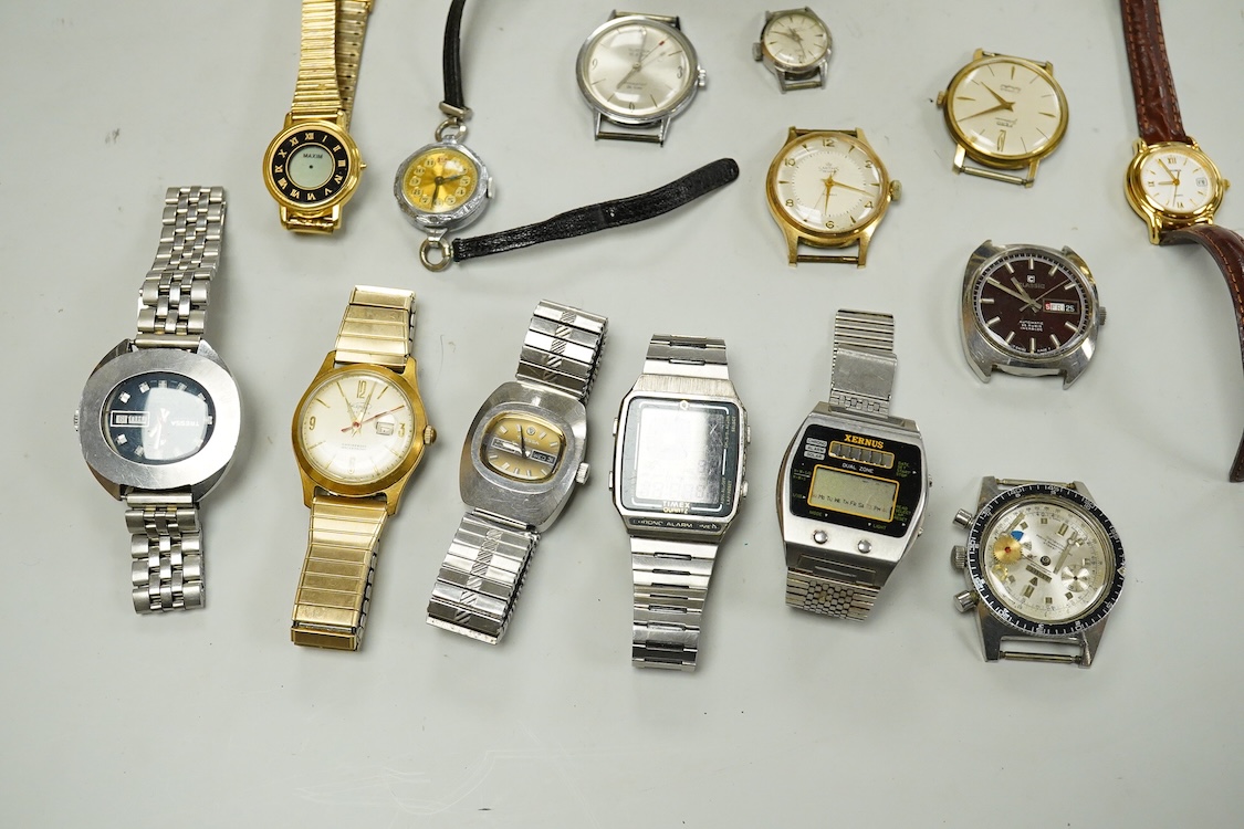 Lot 1926 , A collection of mostly gentleman’s wristwatches to include a stainless steel Tressa automatic calendar wristwatch, another Tressa wristwatch, Xernus quartz Digital display wristwatch, Timex quartz with digital display et