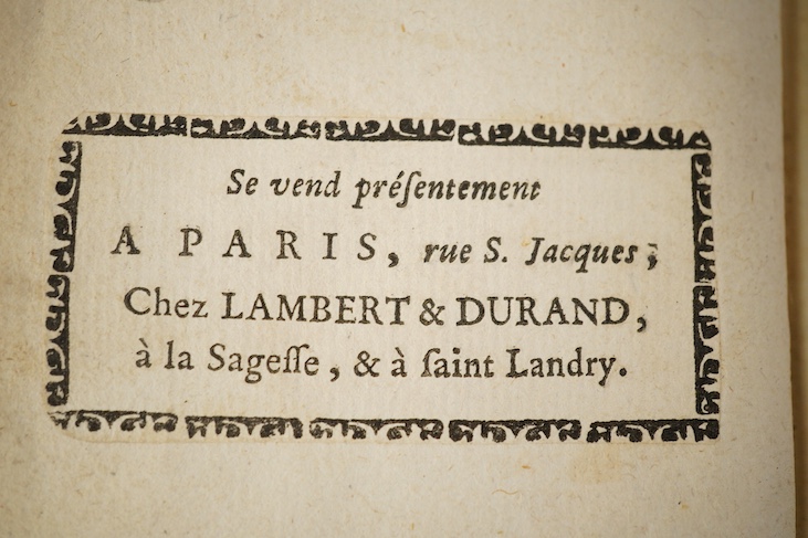 ° Portrait de la Femme Forte et Vertueuse. Tiré de l'Ecriture Sainte. text decorations; contemp. gilt decorated half calf and marbled boards with panelled spine, 12mo. Paris: Jacques Josse... et Louis d'Hotelfort... 1729
