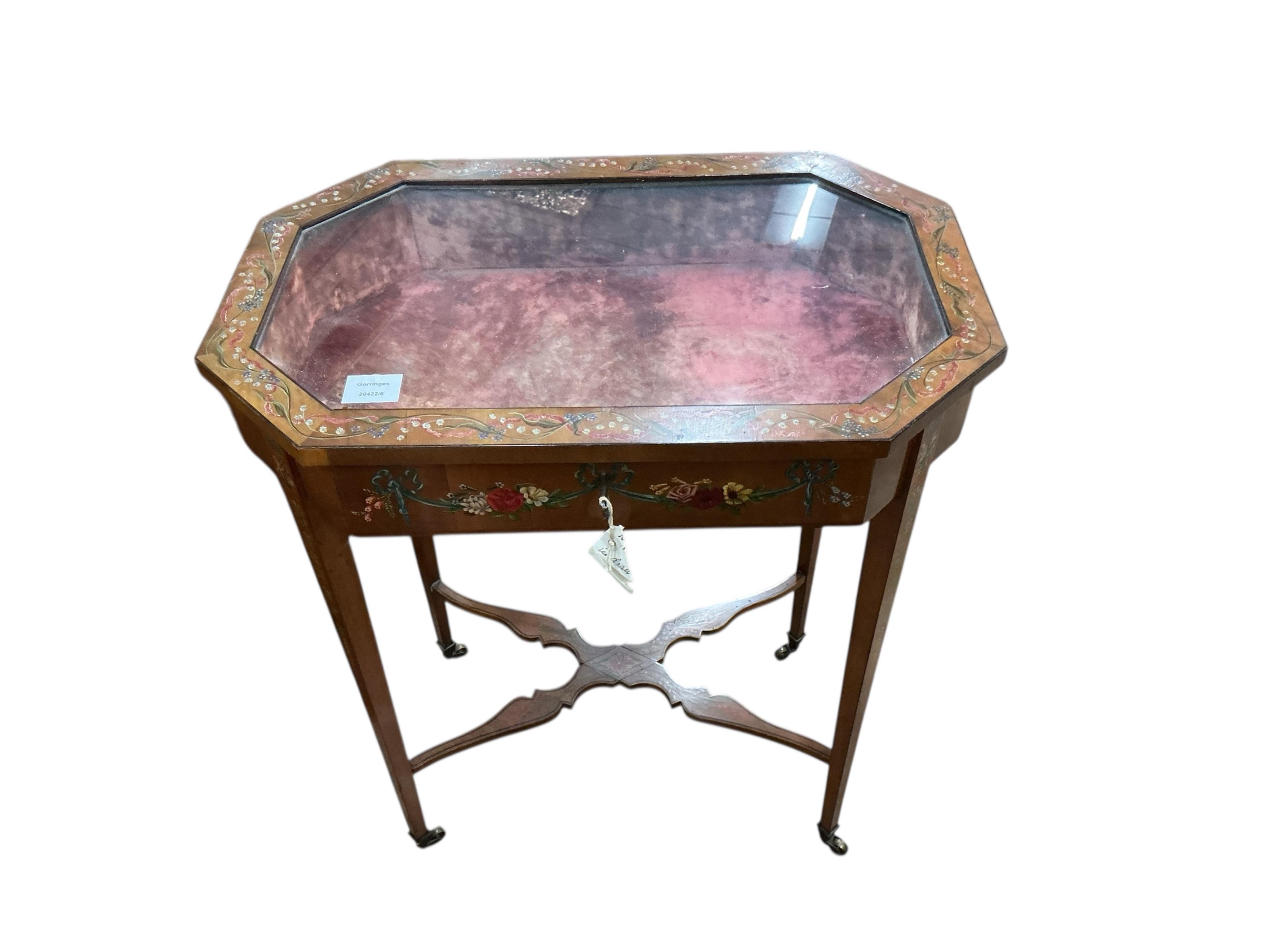 An Edwardian painted mahogany octagonal bijouterie table, width 61cm, depth 40cm, height 72cm