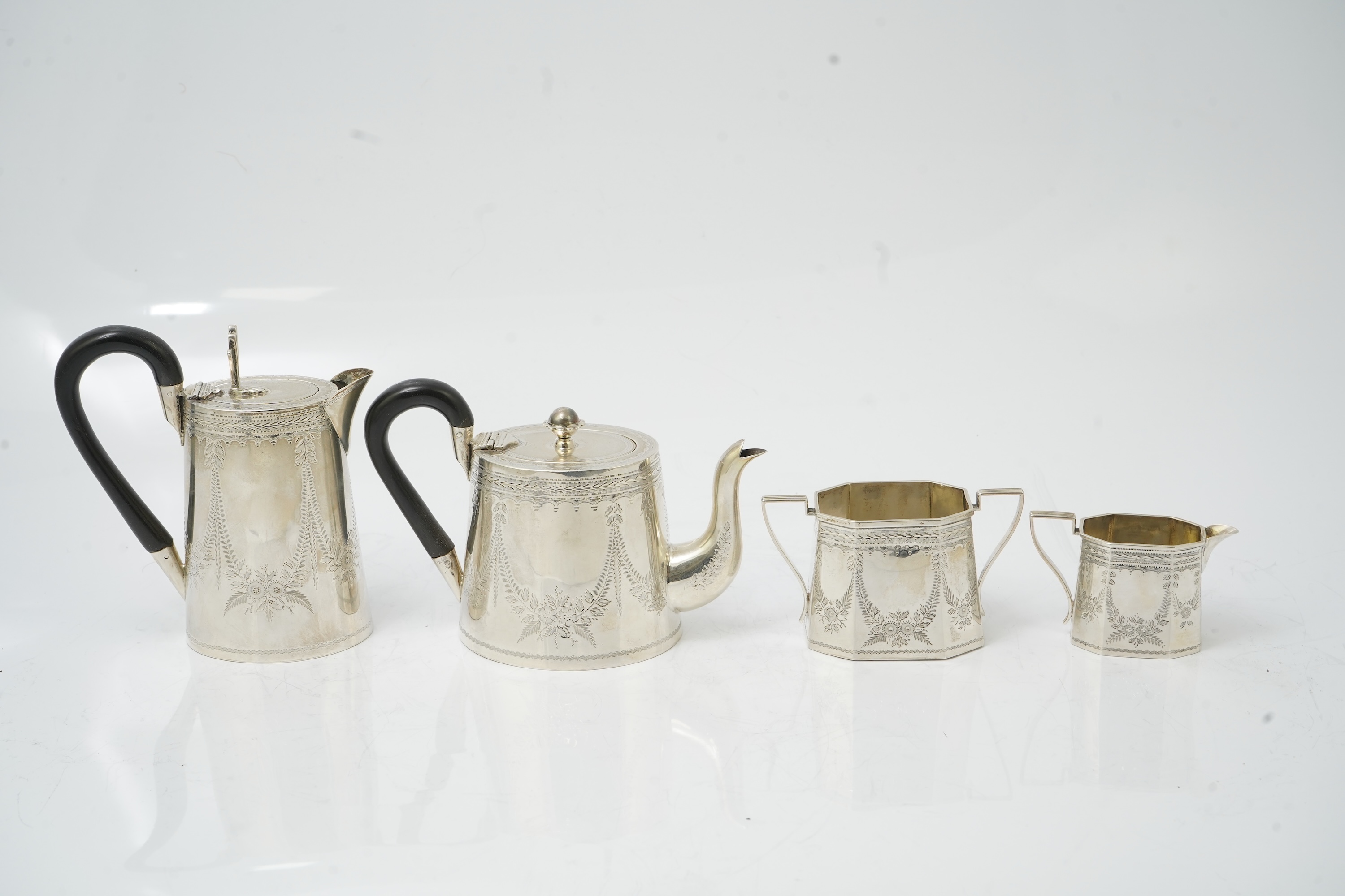 Lot 35 , A late Victorian engraved silver four piece bachelor's tea set, by William Devonport