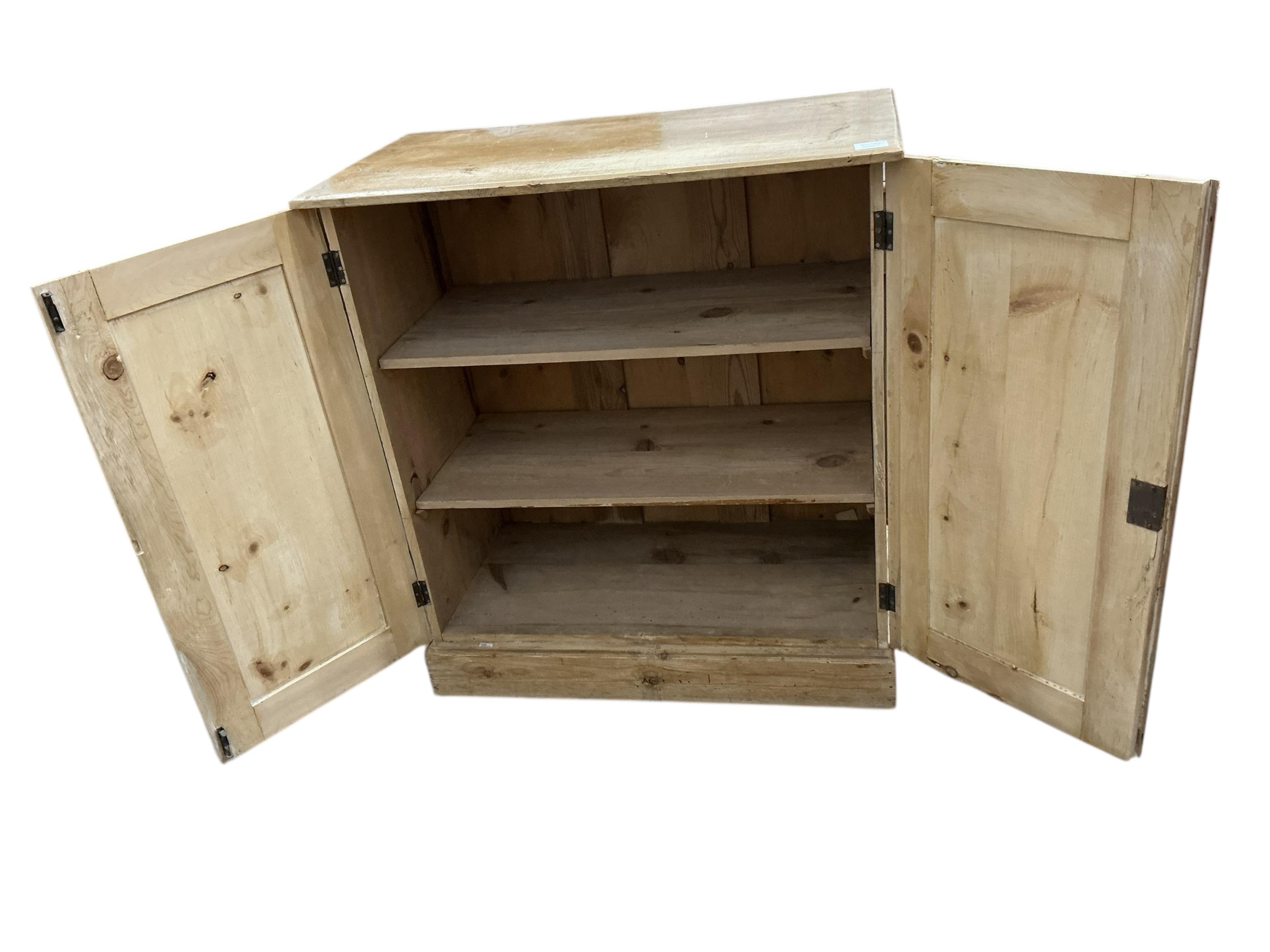 A Victorian pine two door cupboard, width 84cm, depth 45cm, height 91cm