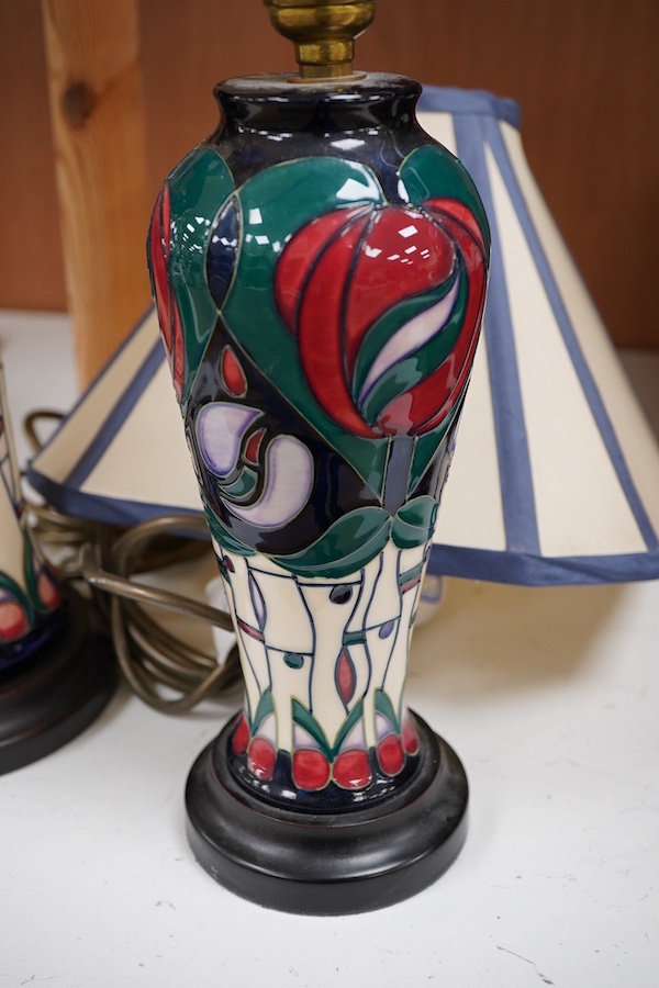 Tow Moorcroft ‘Rennie Macintosh’ style lamps, tallest 28cm