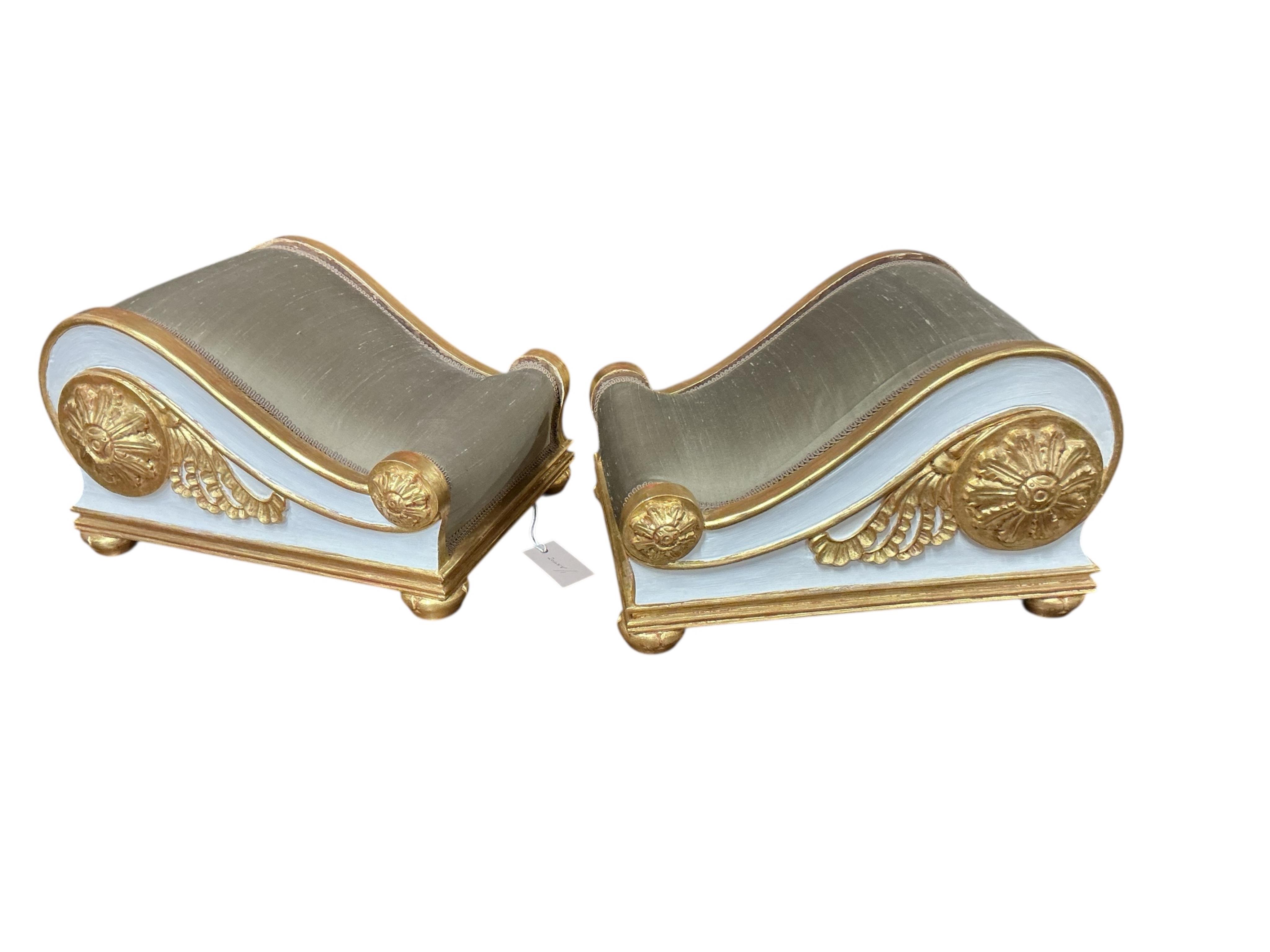 Lot 102 , A pair of Regency style painted upholstered footstools, width 28cm, depth 36cm, height 22cm
