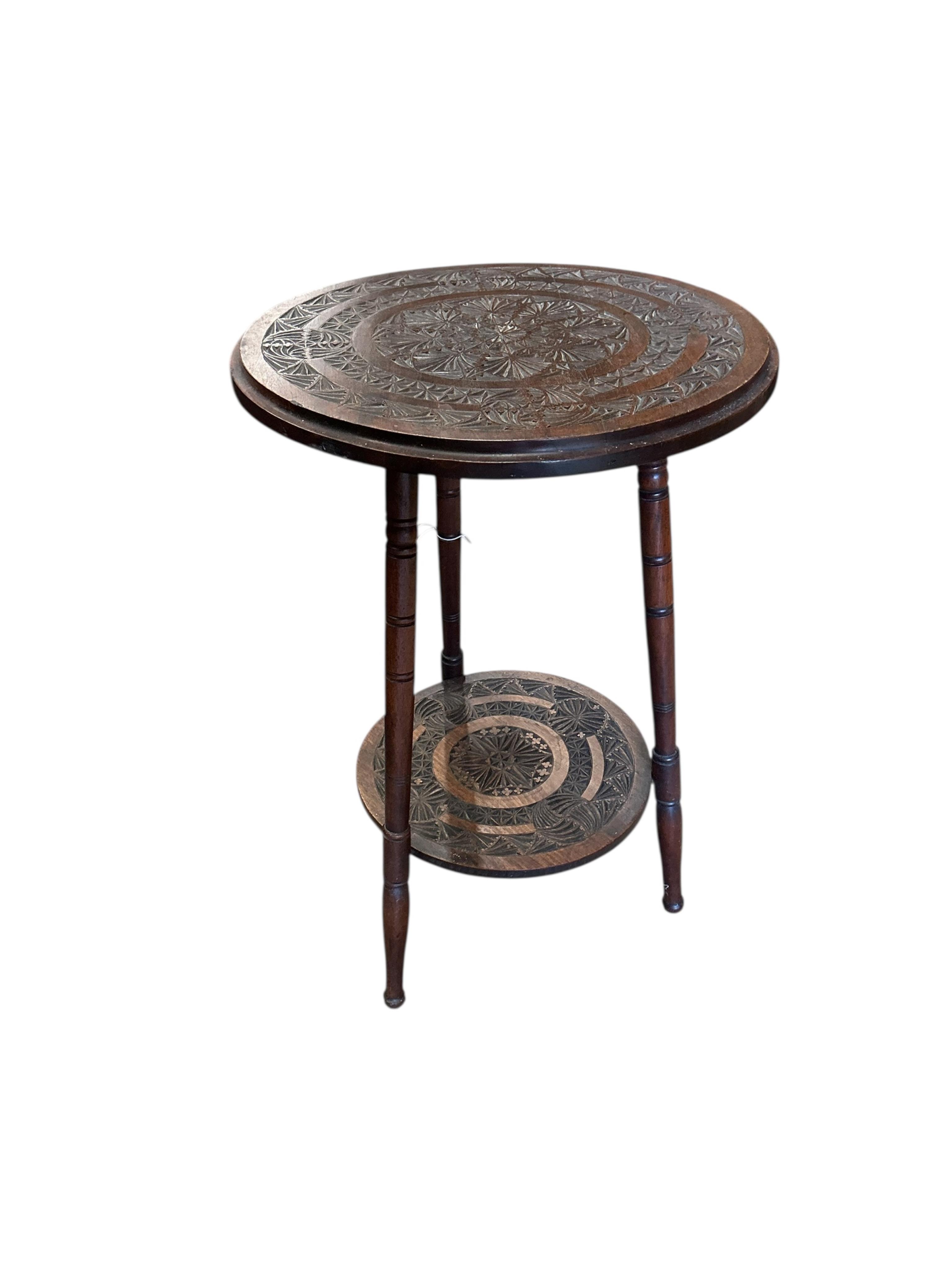 Lot 1071 , A late 19th century Anglo Indian chip carved two tier occasional table, diameter 44cm, height 67cm