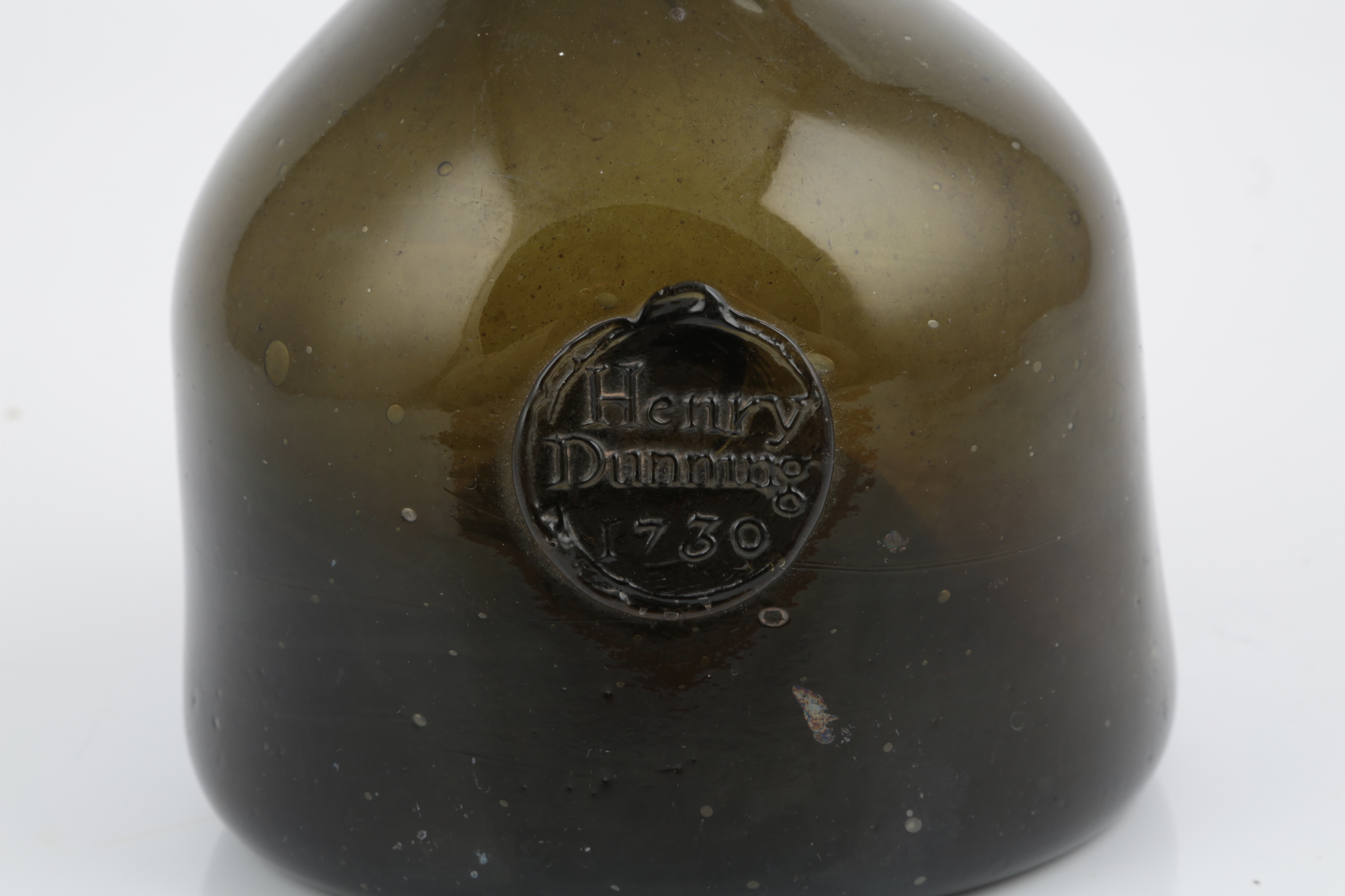 Lot 1 , A George II mallet-shaped wine bottle, with moulded seal for Henry Dunning