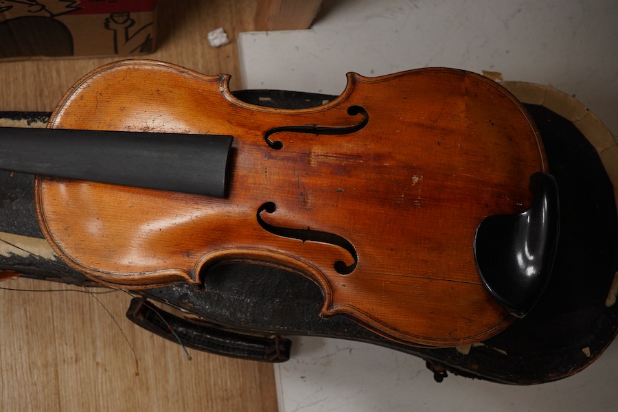 Lot 1343 , A 20th century cased violin with 36cm back
