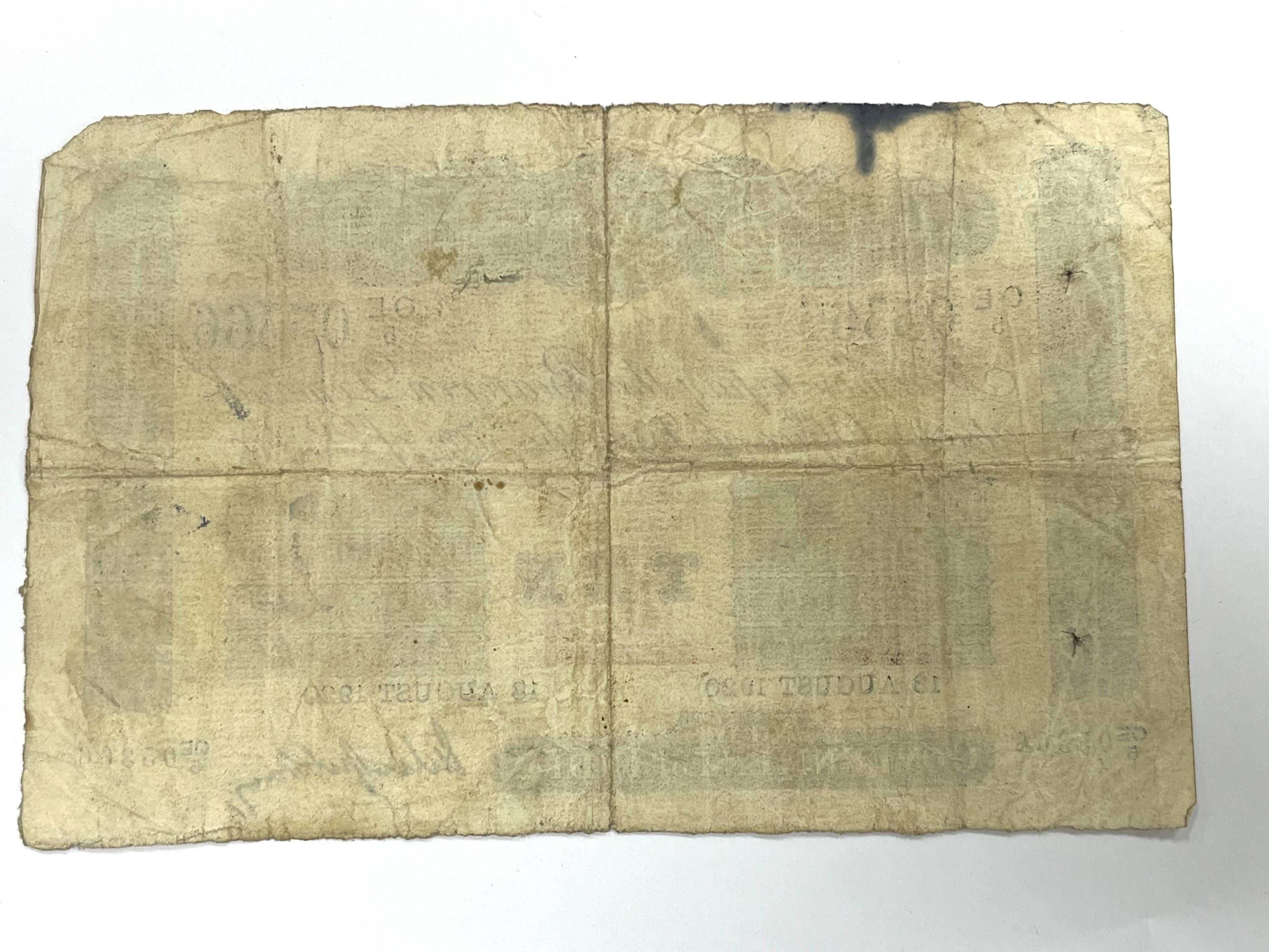 Lot 2057 , Government of India, 10 Rupees banknote, 4th issue, 18 August 1920, Gubbay signature, no issuing letter at this date, serial number OE/5 05366, folds, stains, spindle holes and small hole centre, scarce