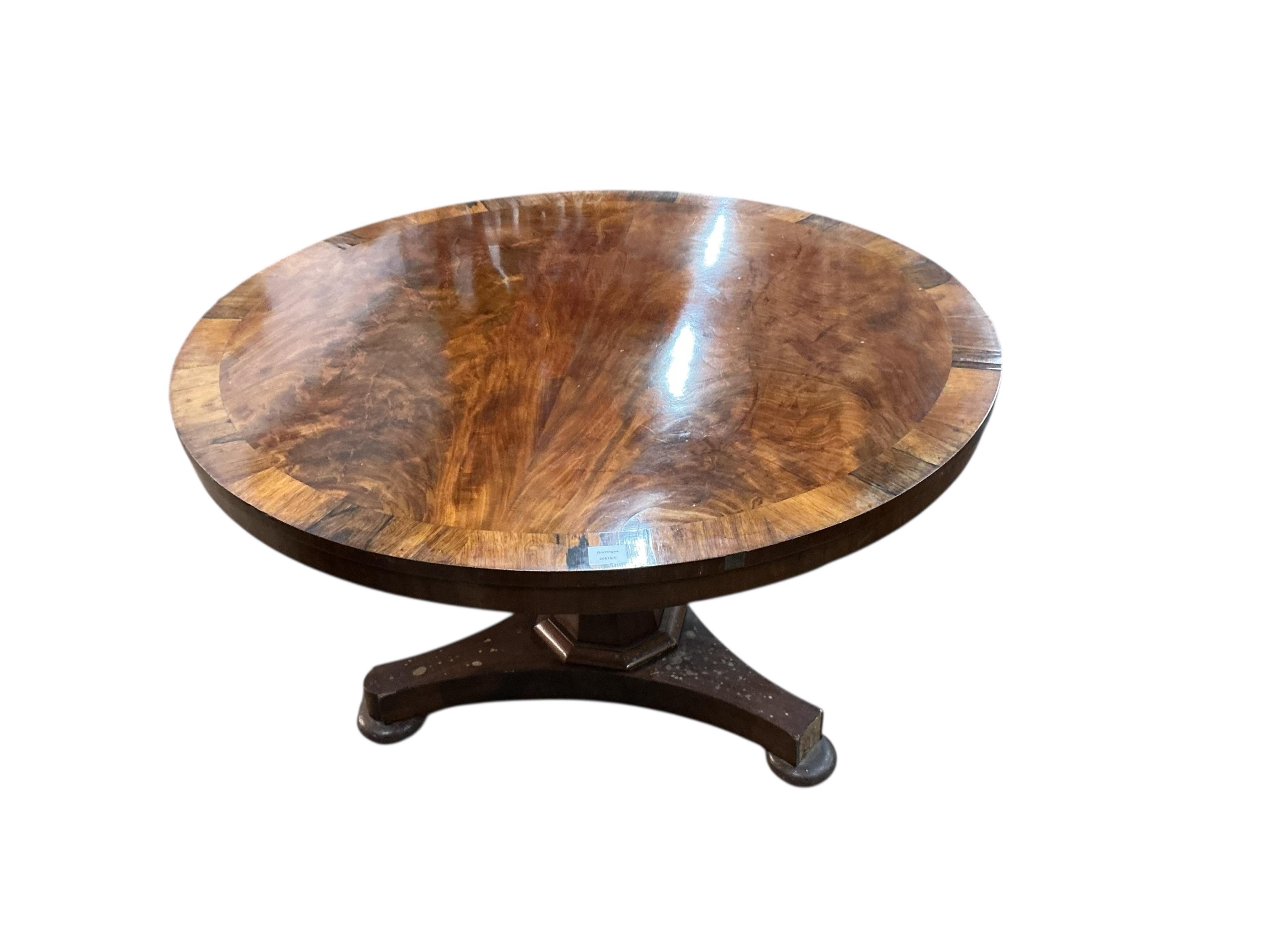Lot 111 , An early Victorian rosewood crossbanded circular mahogany tilt top breakfast table, diameter 120cm, height 71cm