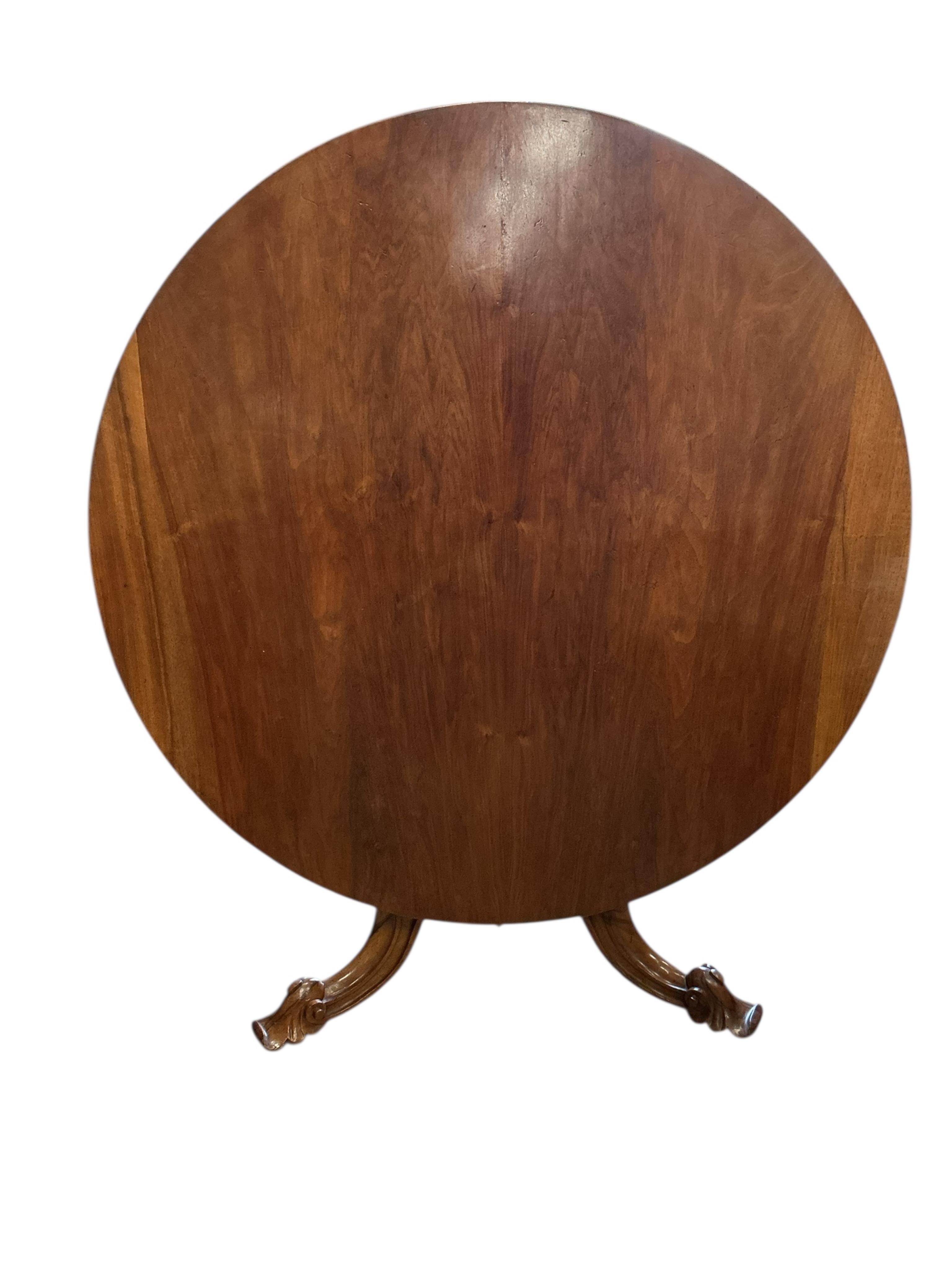 A Victorian circular walnut tilt top breakfast table, diameter 120cm, height 72cm