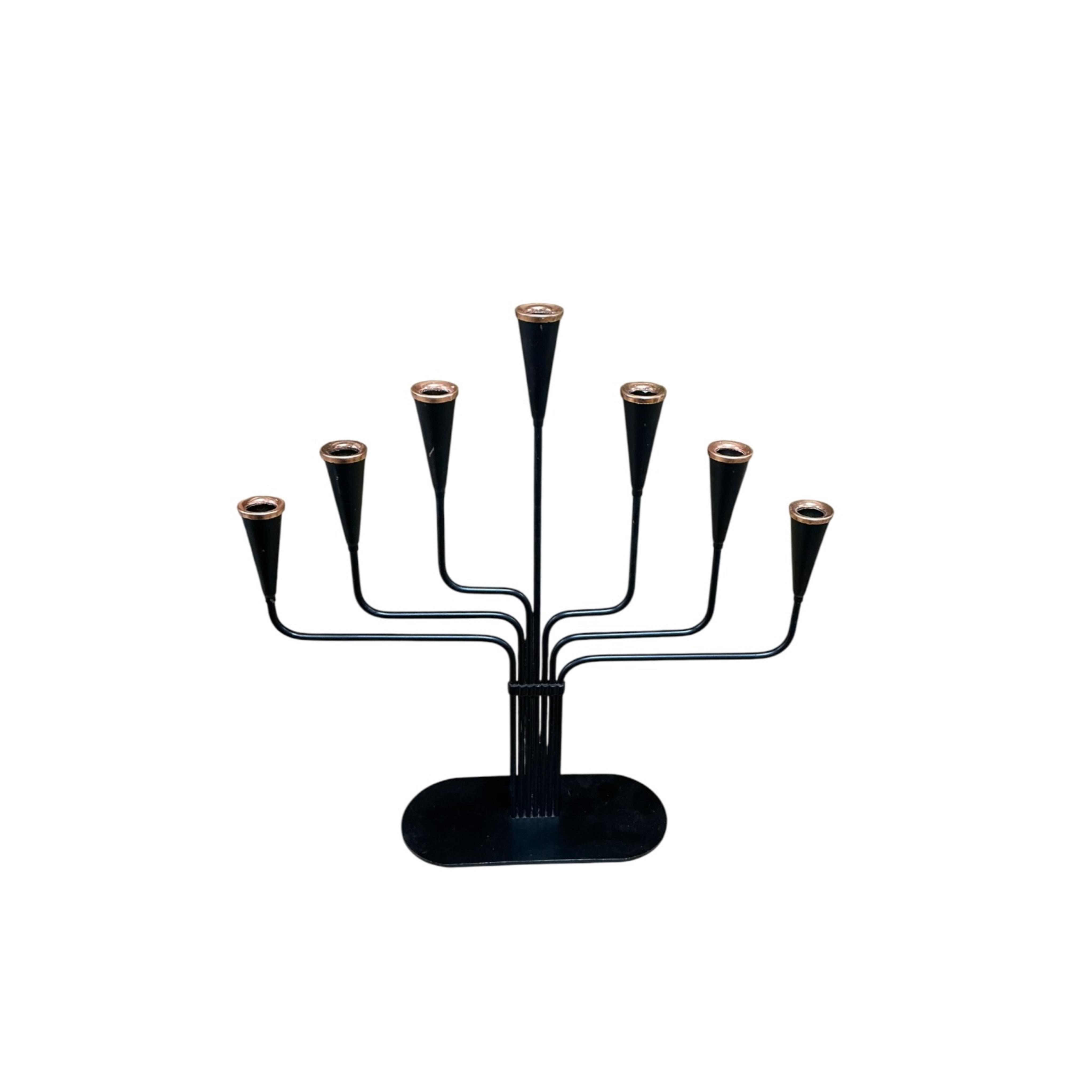 Gunnar Ander (Swedish, 1908-1976), A pair of mid century seven light wrought iron candelabra, 29cm high