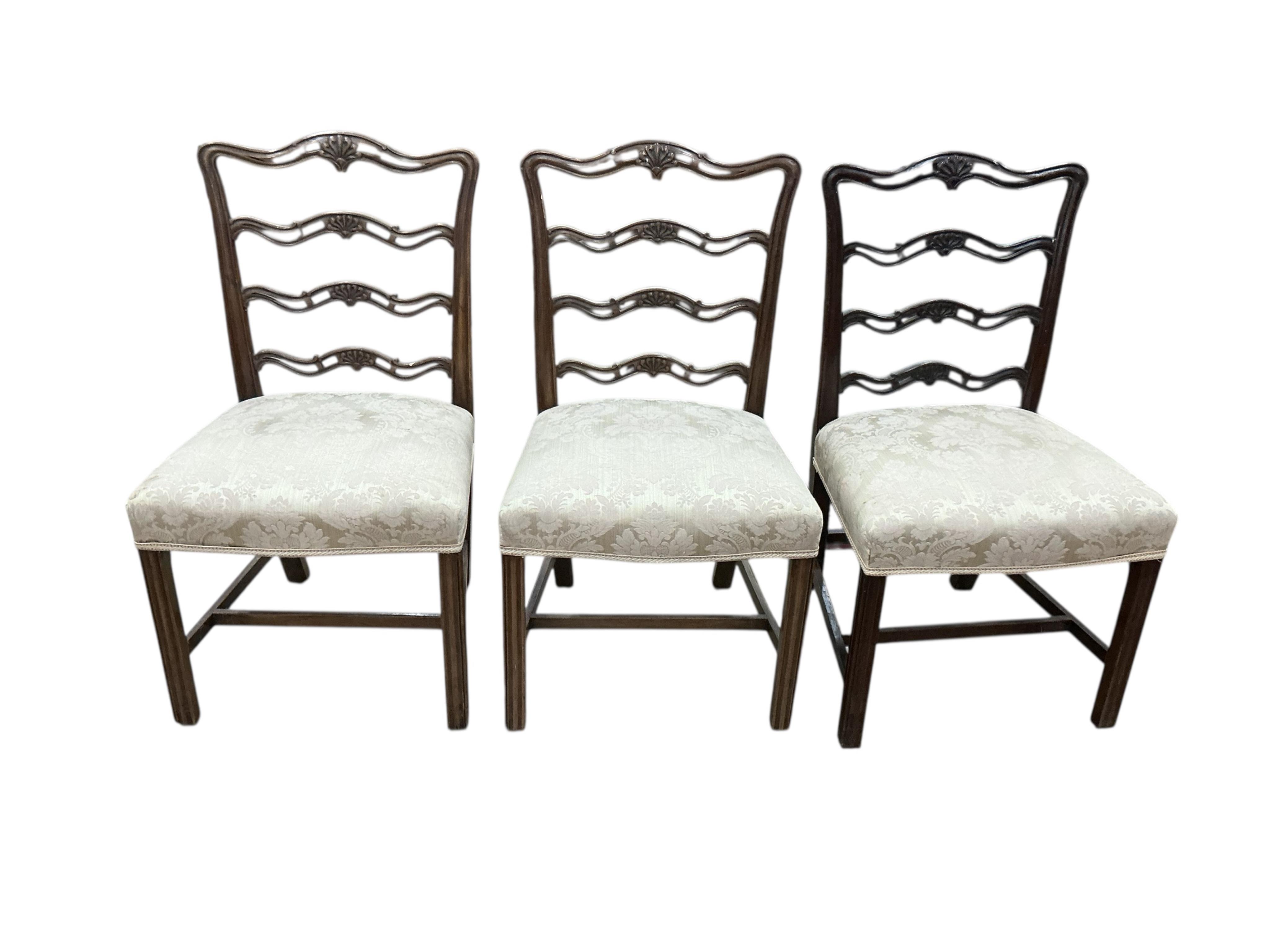 A set of eight Chippendale style pierced ladder back mahogany dining chairs, two with arms