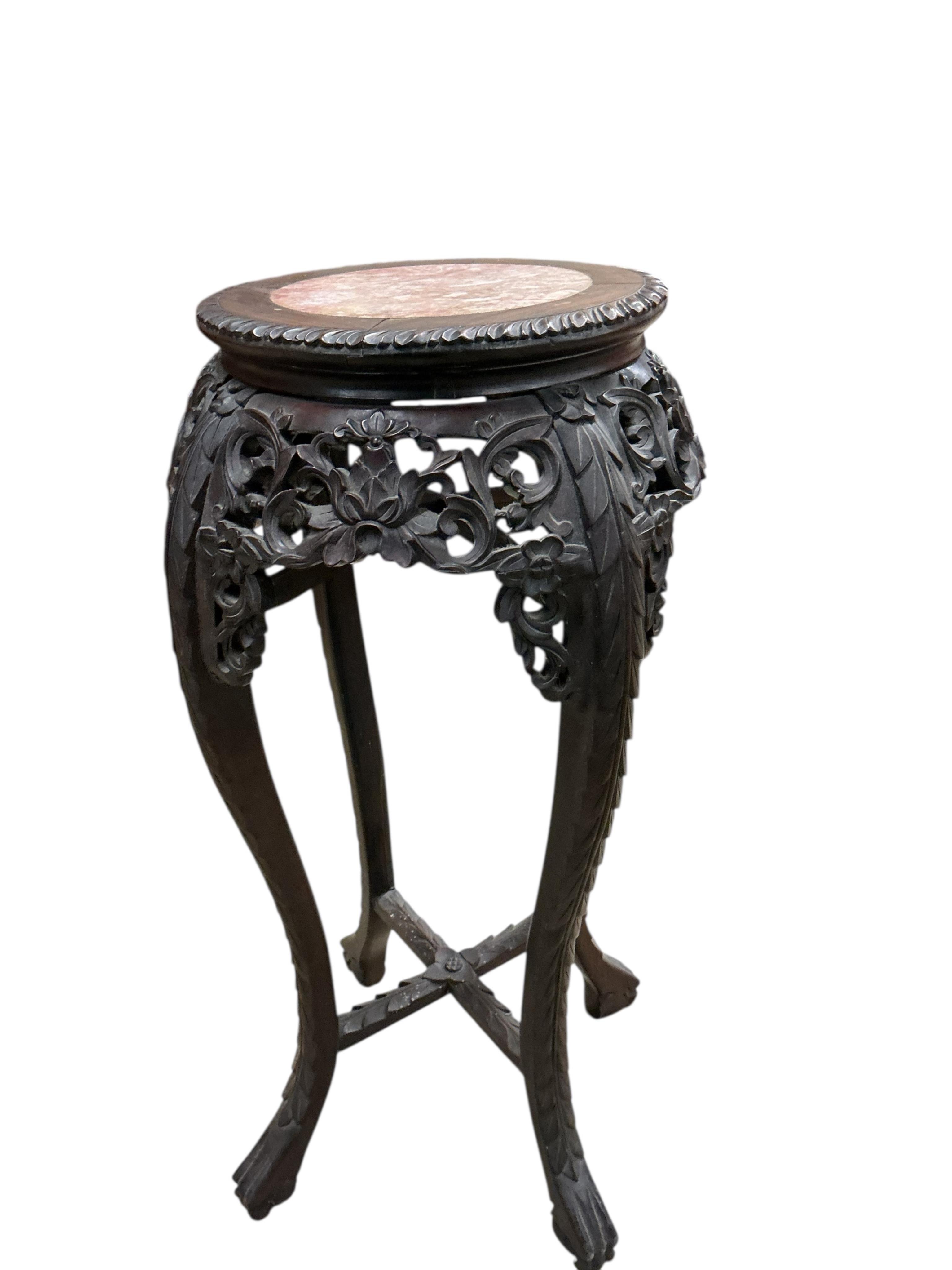 Lot 1039 , A 19th century Chinese circular marble top vase stand, height 78cm
