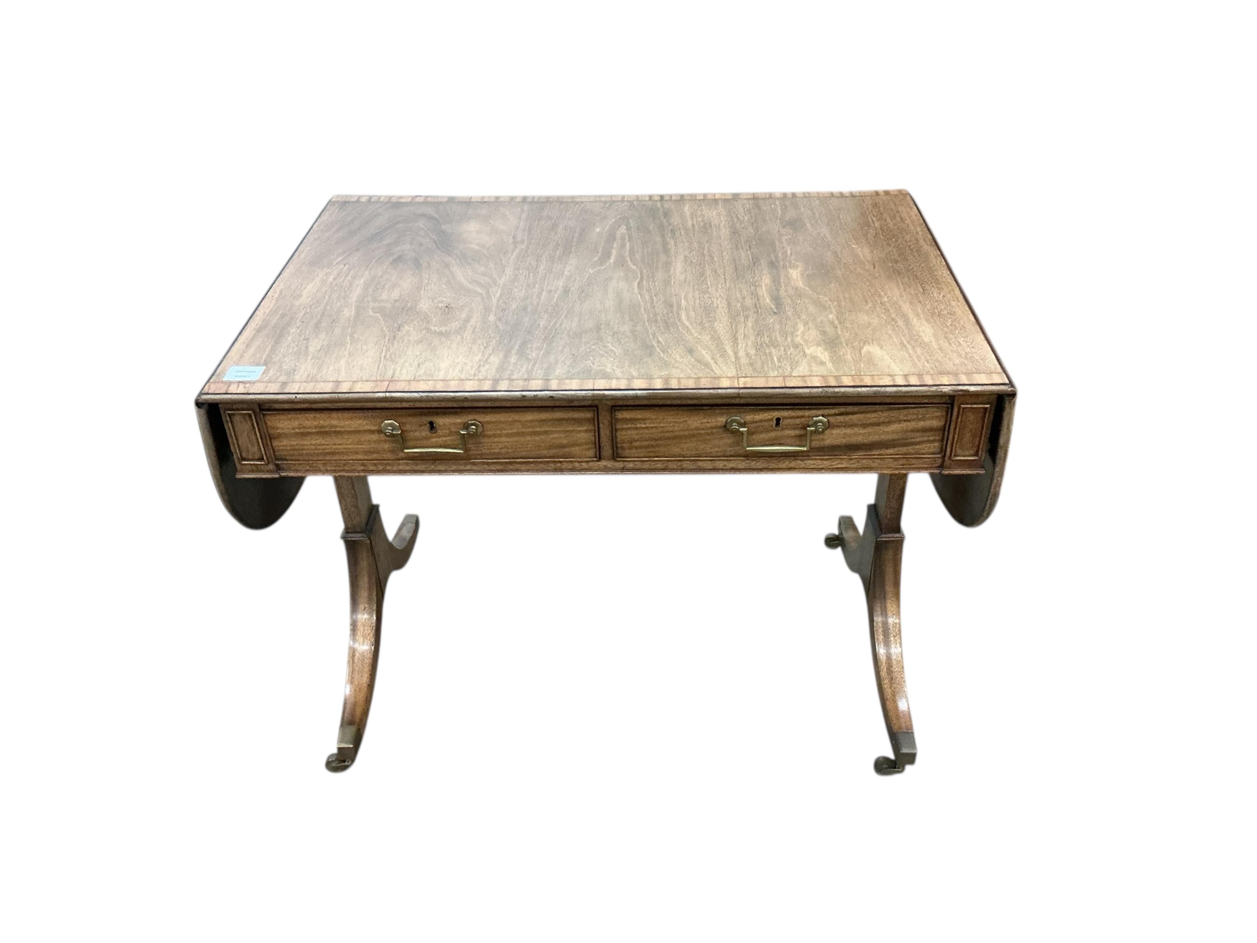 Lot 47 , A Regency style satinwood banded pale mahogany sofa table, width 94cm, depth 61cm, height 71cm