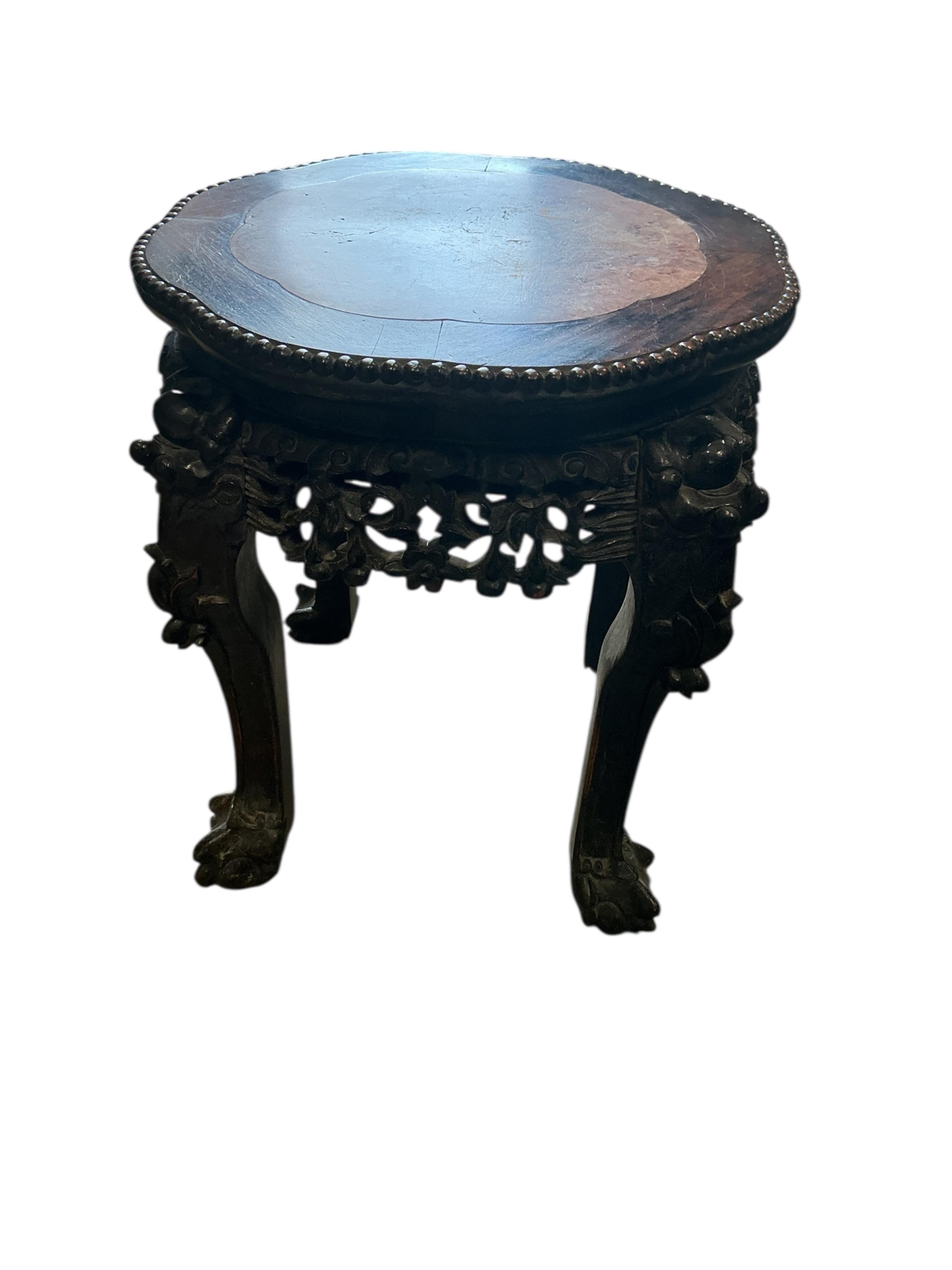 Lot 1105 , A Chinese circular padouk marble top vase stand, diameter 41cm, height 46cm