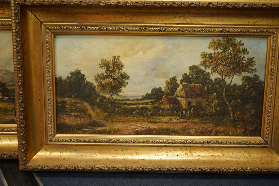 C. Butler (late 19th century), pastoral landscapes, each signed, pair of oils on canvas, 19 x 39cm