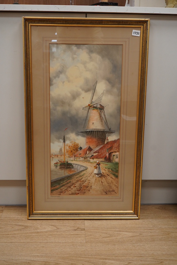 Hermanus II Koekkoek (Louis Van Staaten, Dutch 1836-1909), 'Papendrecht', signed, watercolour, 64 x 29cm