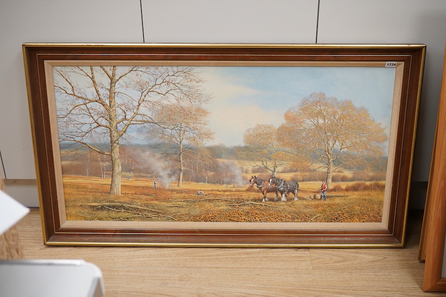 Paul Morgan (British, b.1940), 'Timber Hauling', signed, ex. Stacy Marks, oil on canvas, 50 x 100cm