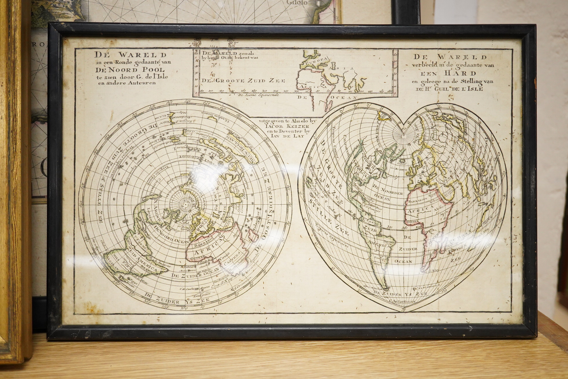 Lot 708 , Four 17th century and later hand coloured engraved maps to include ‘Molvccae’, Maluku Islands, Indonesia, possibly by Wilem Janszoon Blaeu, text verso, Robert Morden, Kent and a map of the hundreds Tenterden, Blackbourne