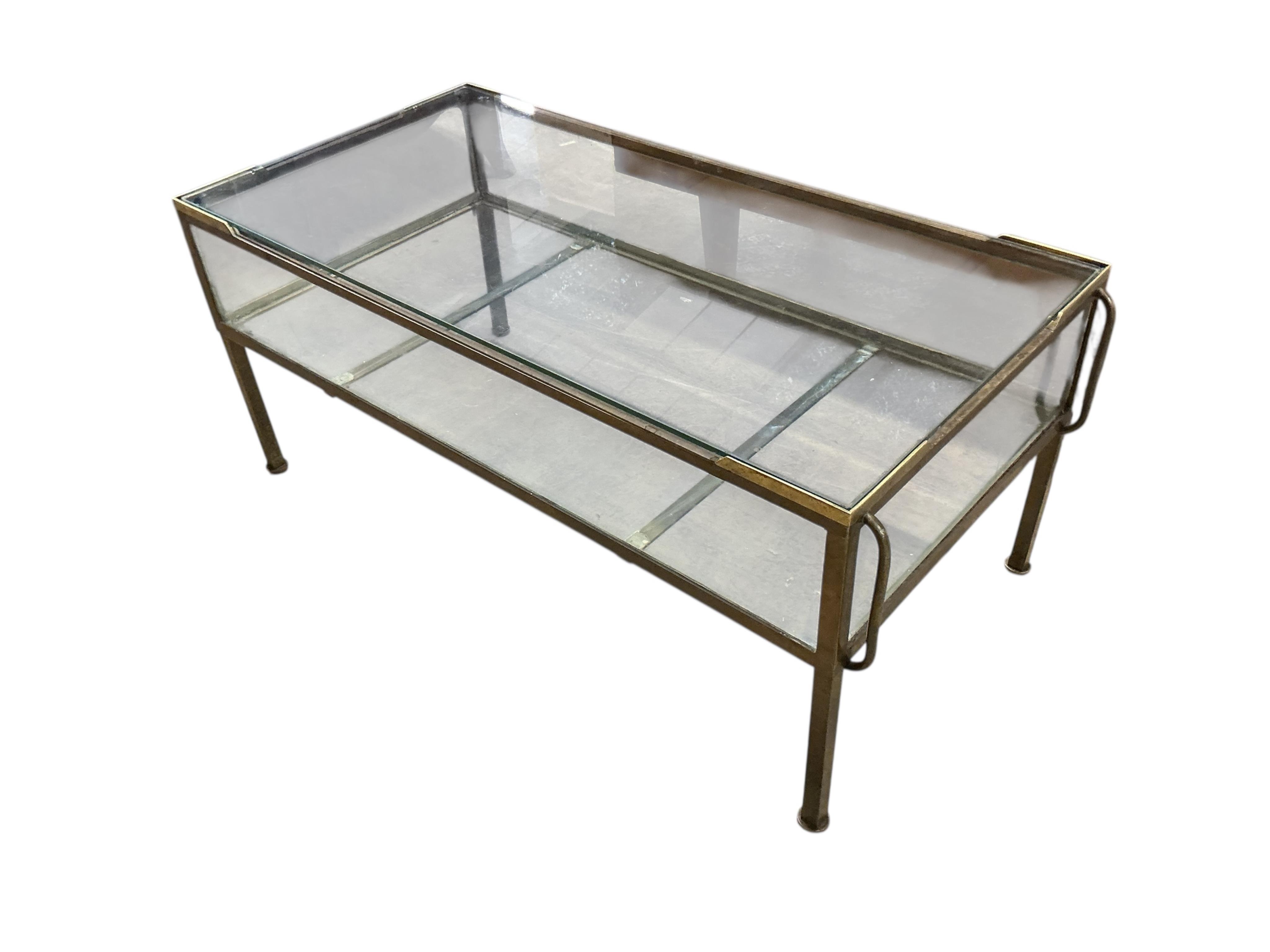 Lot 1029 , A mid century brass and glass display coffee table with removable rectangular top, width 96cm, depth 46cm, height 41cm.