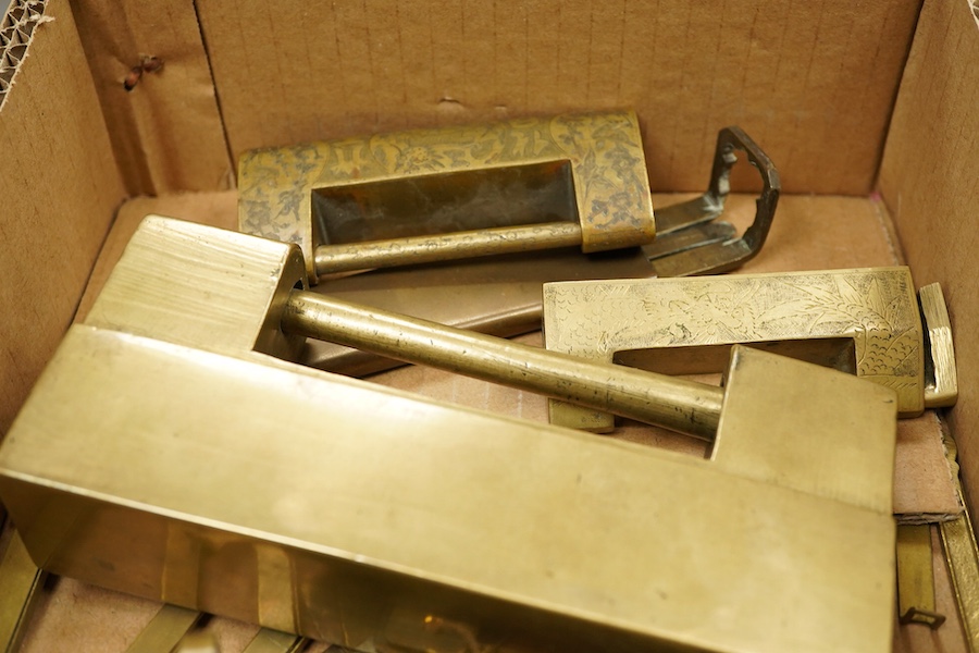 Eleven various Chinese brass furniture locks, 19th/early 20th century, related latches