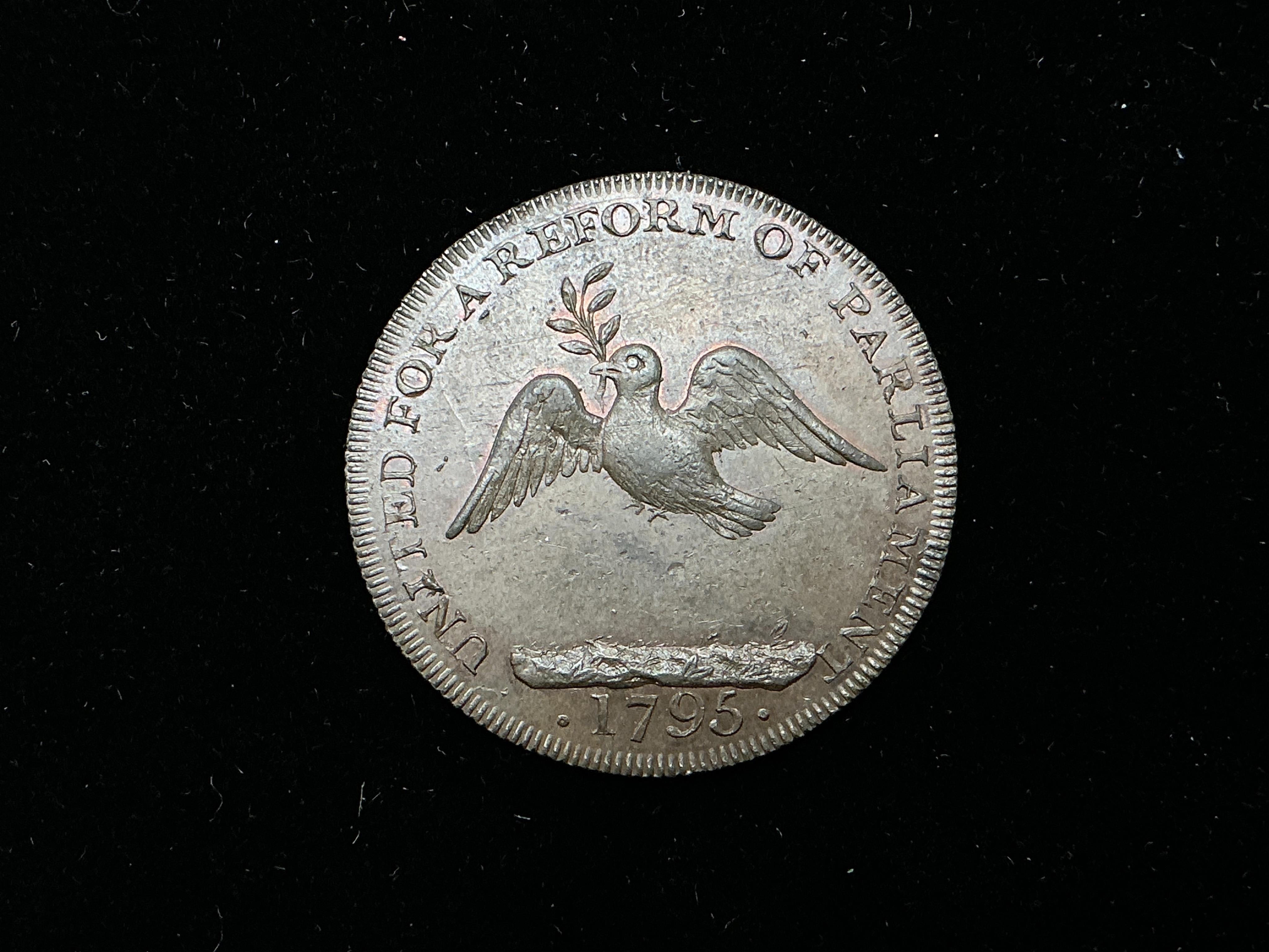 Lot 2145 , Thomas Spence, 1750-1814, Middlesex Copper Halfpenny Token, 1795, London Corresponding Society, rev. about UNC, some lustre