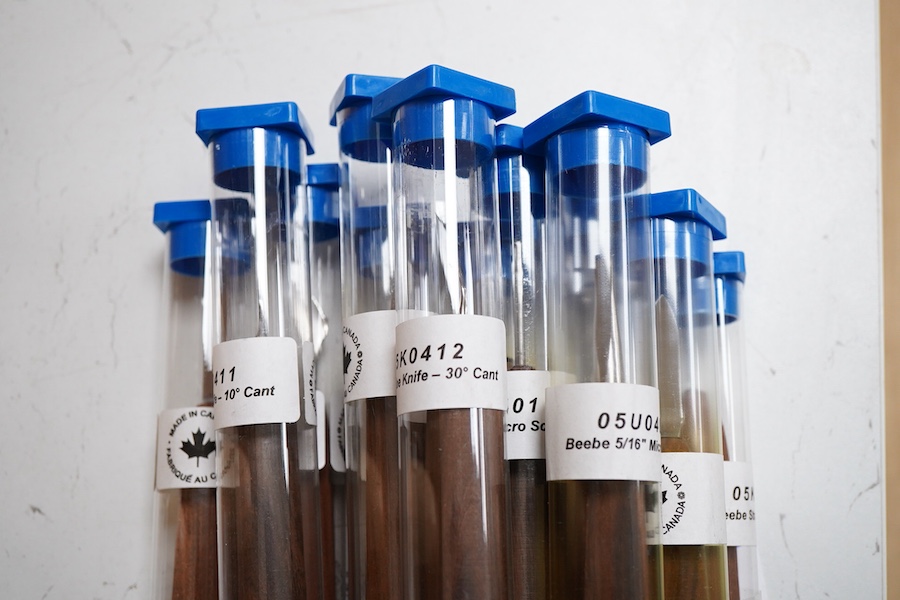 A set of twelve individually cased Paul Beebe, Canada, (for Lee Valley Tools), Micro Scorps and wood carving knives