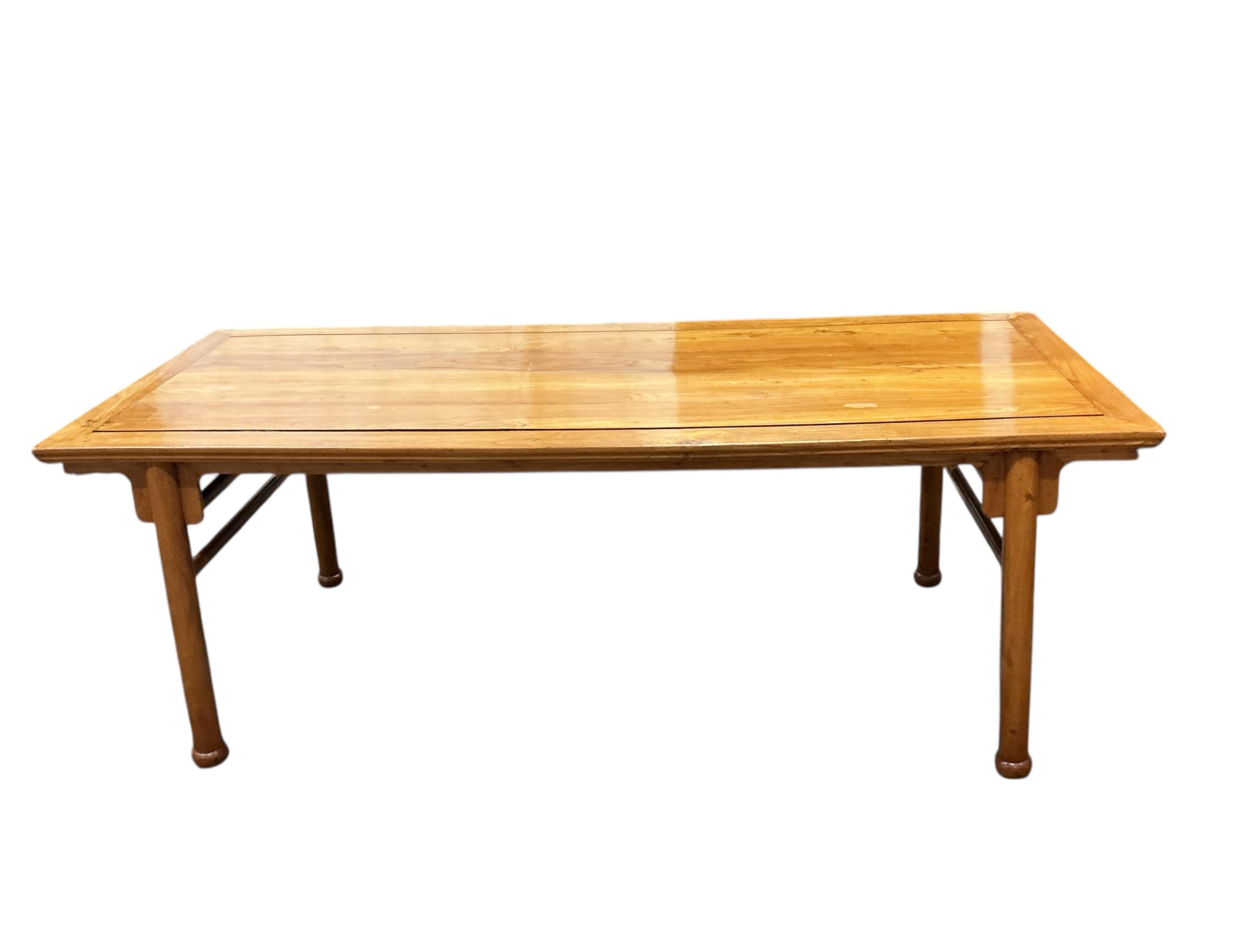 A Chinese rectangular elm dining / serving table, width 224cm, depth 89cm, height 82cm