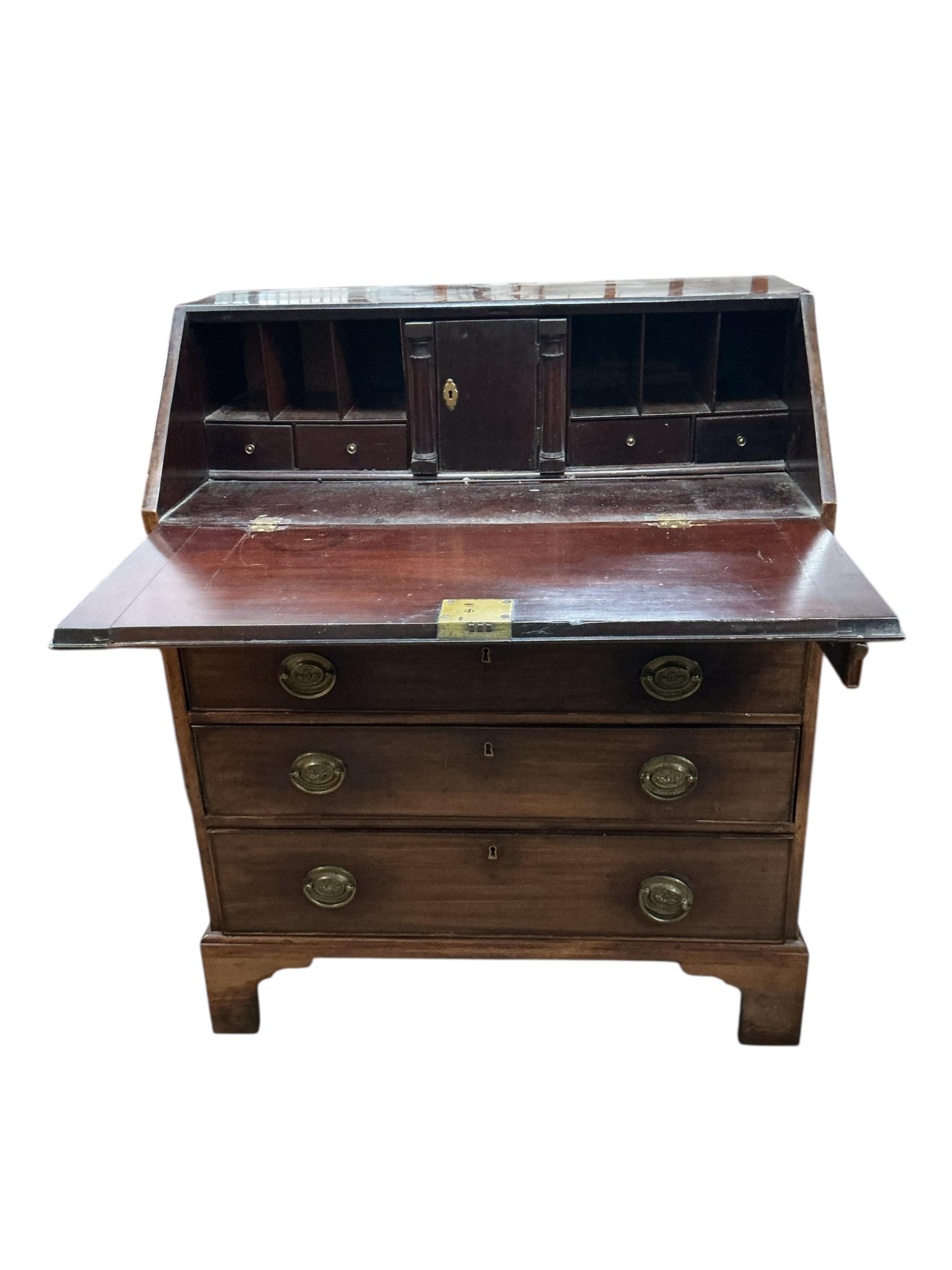 A small George III mahogany bureau, width 83cm, depth 48cm, height 102cm