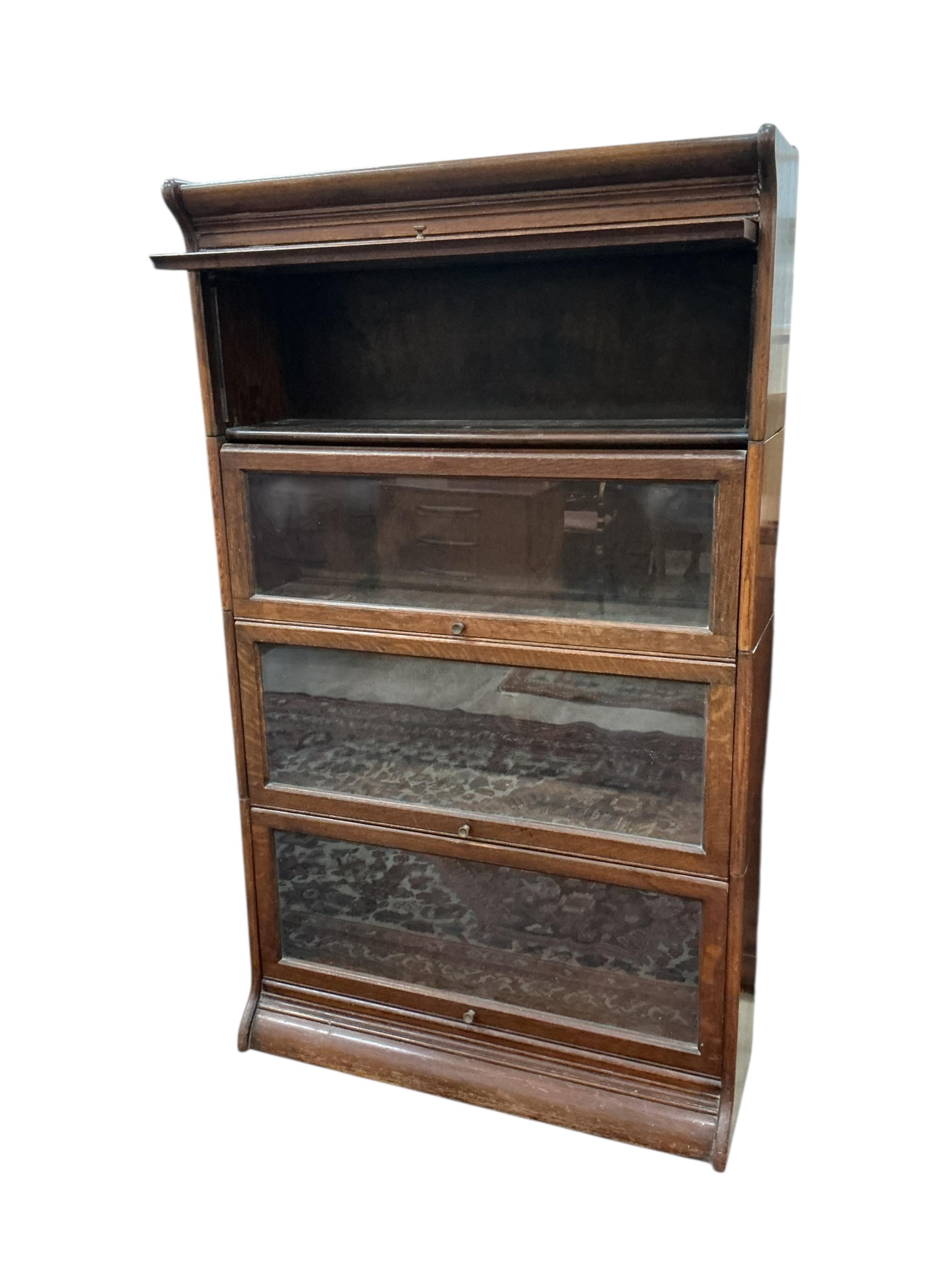Lot 1422 , A four section Globe Wernicke style oak bookcase, width 87cm, depth 30cm, height 145cm