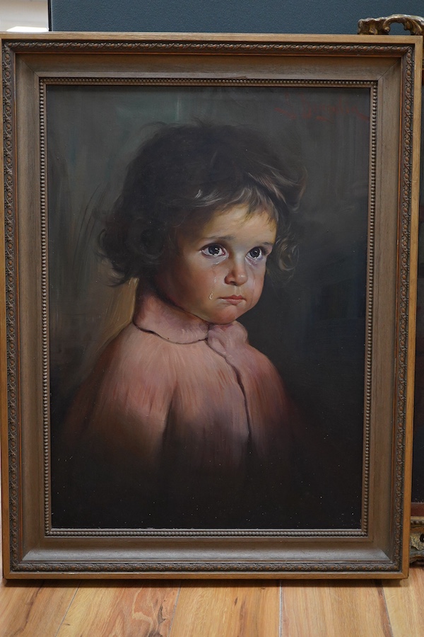 Giovanni Bragolin (1911-1981), a crying young boy and girl, each signed, two oils on canvas, 69 x 49cm