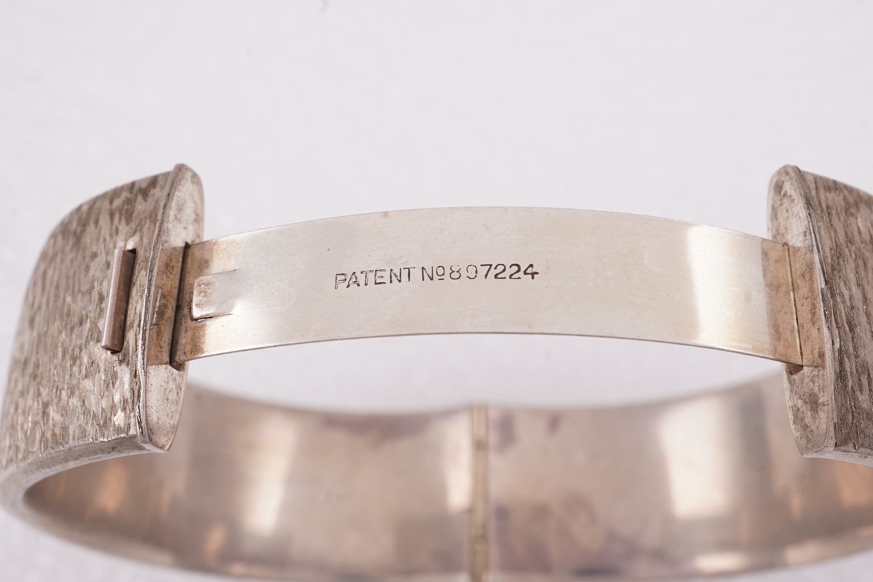 A silver bangle and ring, circa 1976 and later, comprising: a textured silver bangle, inner circumference approximately 17.5cm, British hallmarks, gross weight approximately 60 grams; and a textured bombé ring, size P, stamped 925, gross weight approximately 11 grams