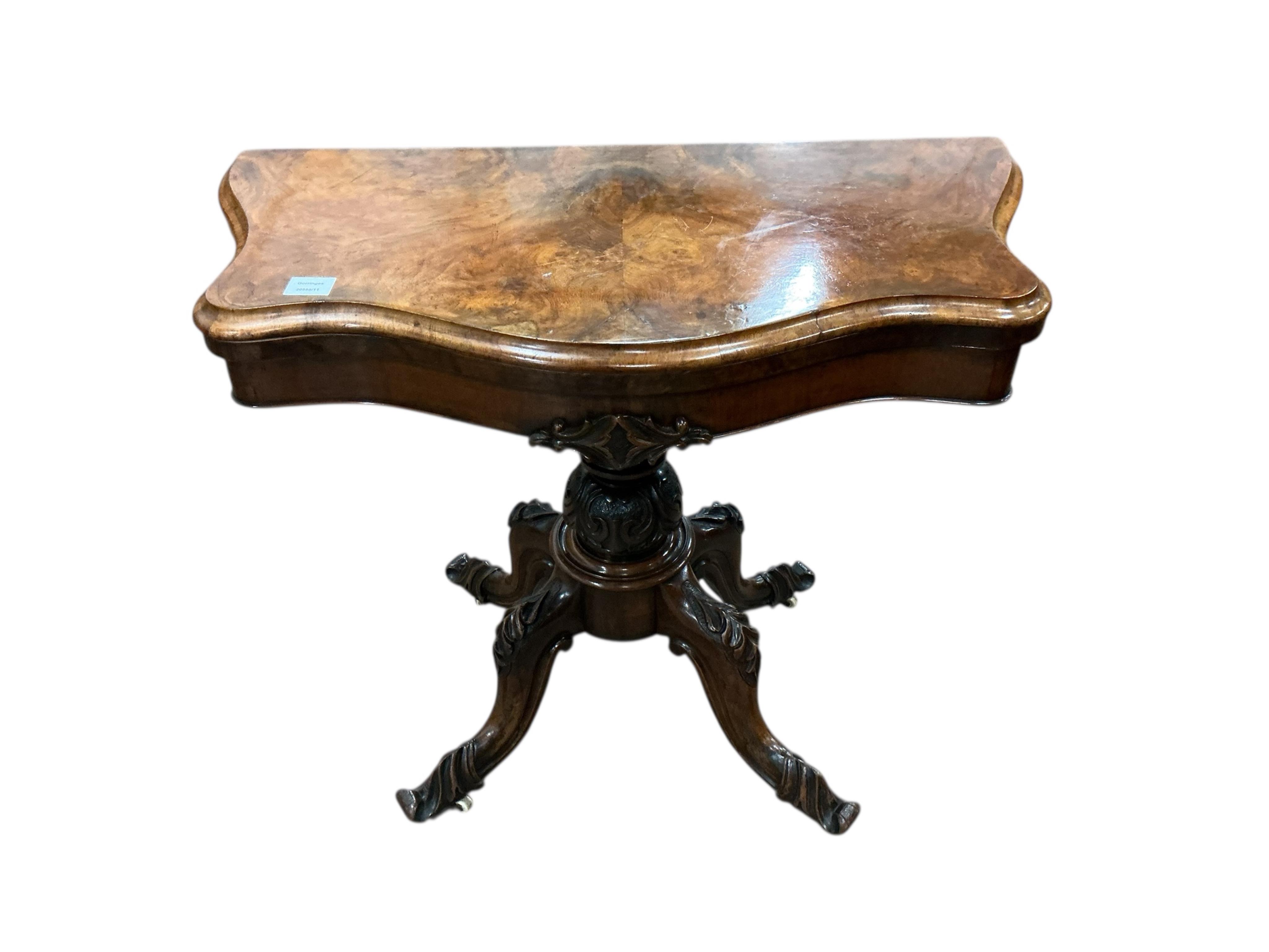 Lot 1462 , A Victorian serpentine walnut folding card table, width 90cm, depth 45cm, height 73cm