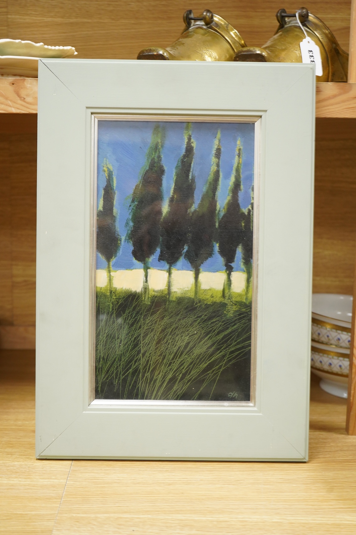 David Humphreys (b.1937), ‘High Summer, Provence’, monogrammed, inscribed verso, oil on board, 34 x 19cm