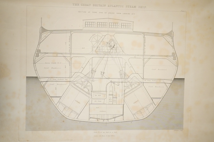 ° The Great Britain Atlantic Steam Ship of 3500 tons... 14 engraved plates 12 folded and advertisement leaf (the only letterpress); original cloth backed original printed wrappers, folio. John Weale, 1847.