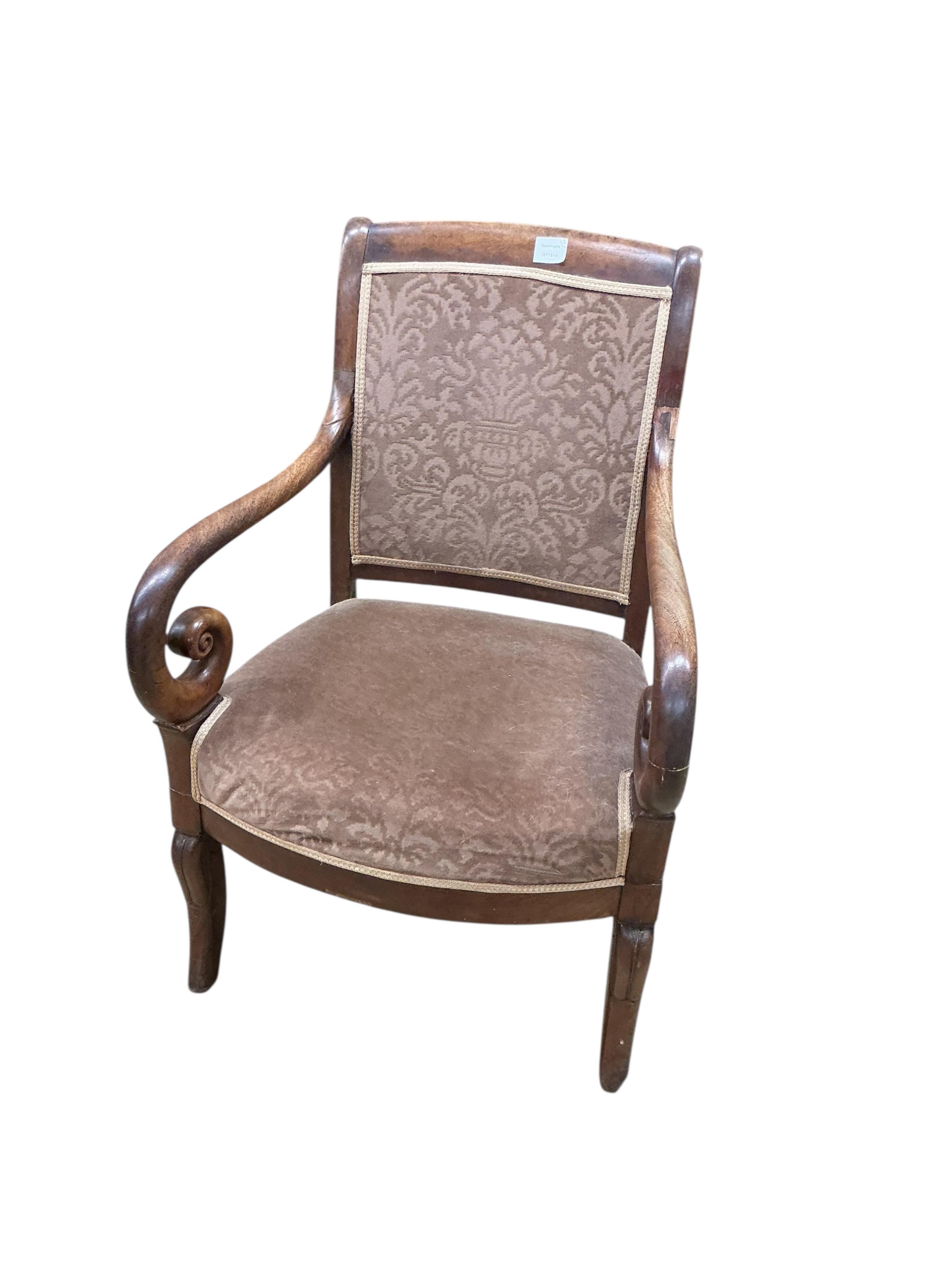 Lot 159 , A French Empire fauteuil, width 58cm, depth 50cm, height 89cm and another chair
