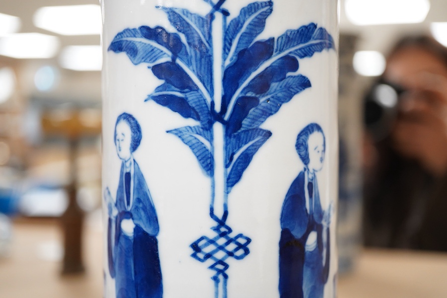 A Chinese blue and white sleeve vase decorated with figures, 26cm high