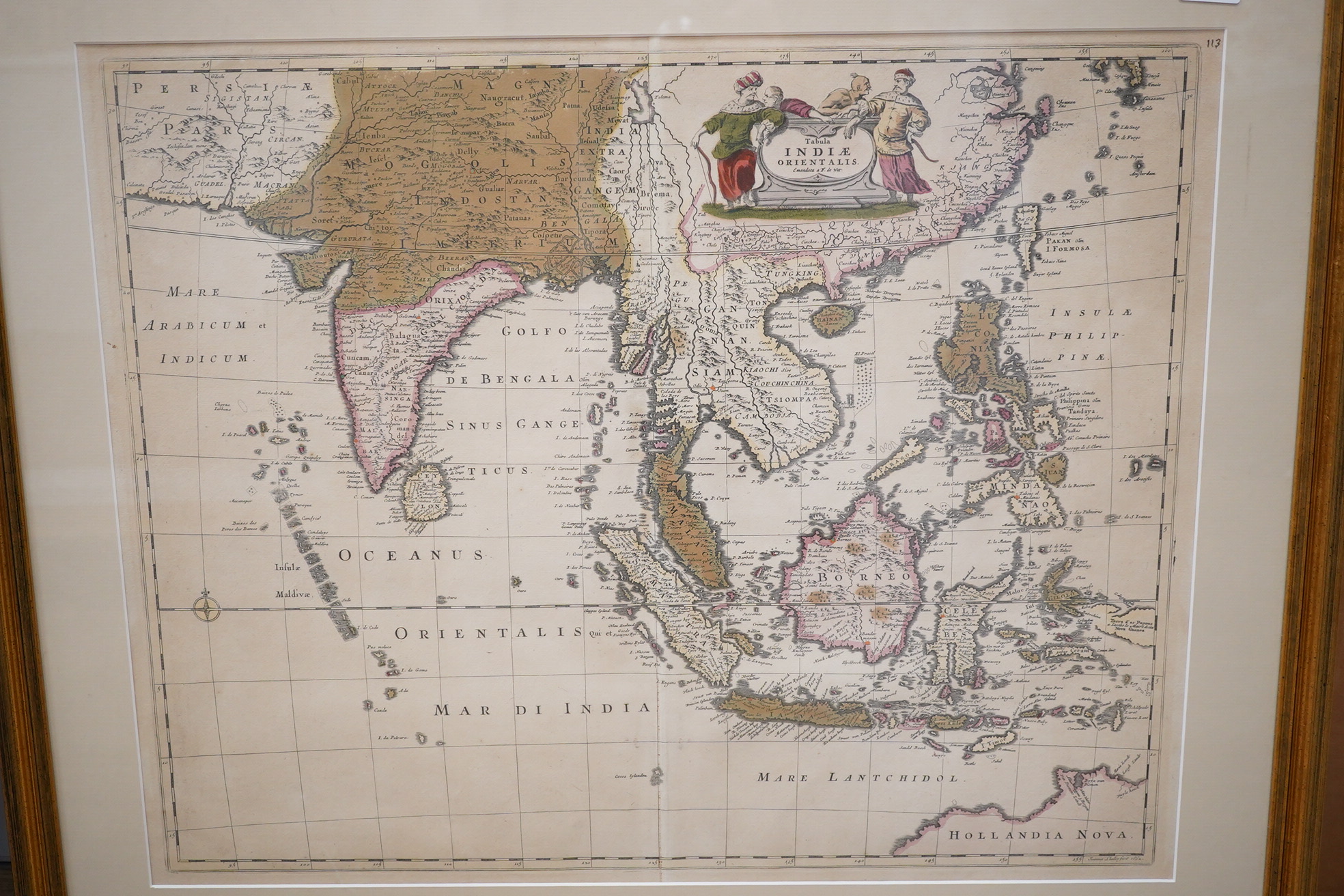 Frederick de Wit (Dutch, 1629-1706), ‘Tabula Indiae Orientalis’, hand coloured engraved map of India, 1662, 47 x 58cm