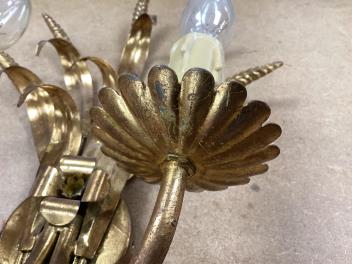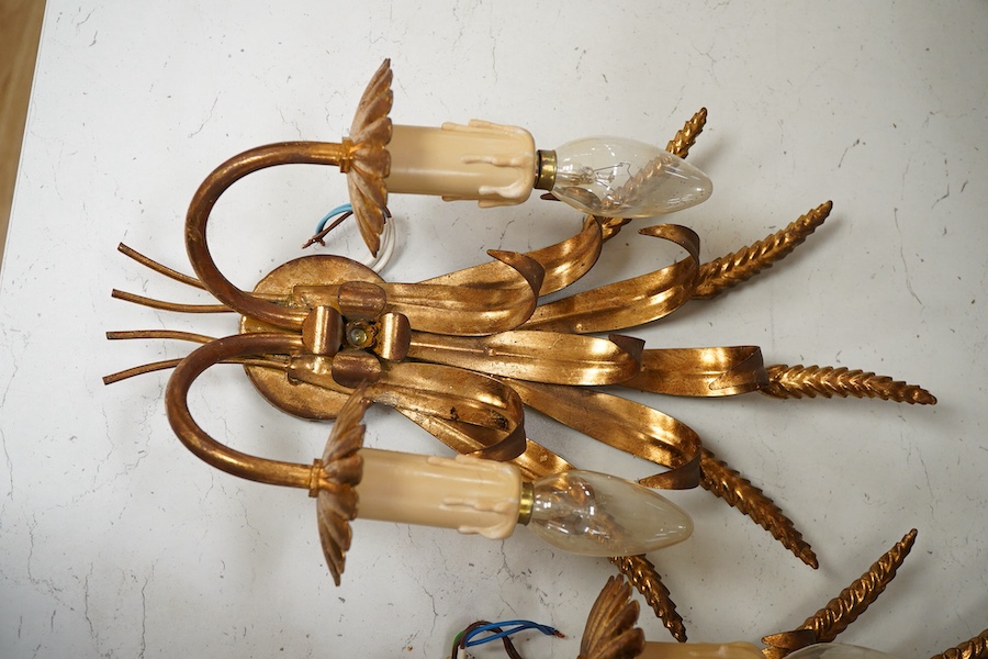 A pair of gilt-metal twin-light wheatsheaf wall sconces, 38cm high