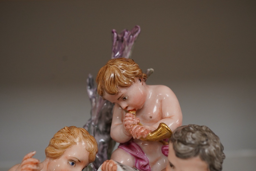 A Naples style porcelain figure group of three cherubs, 19cm high