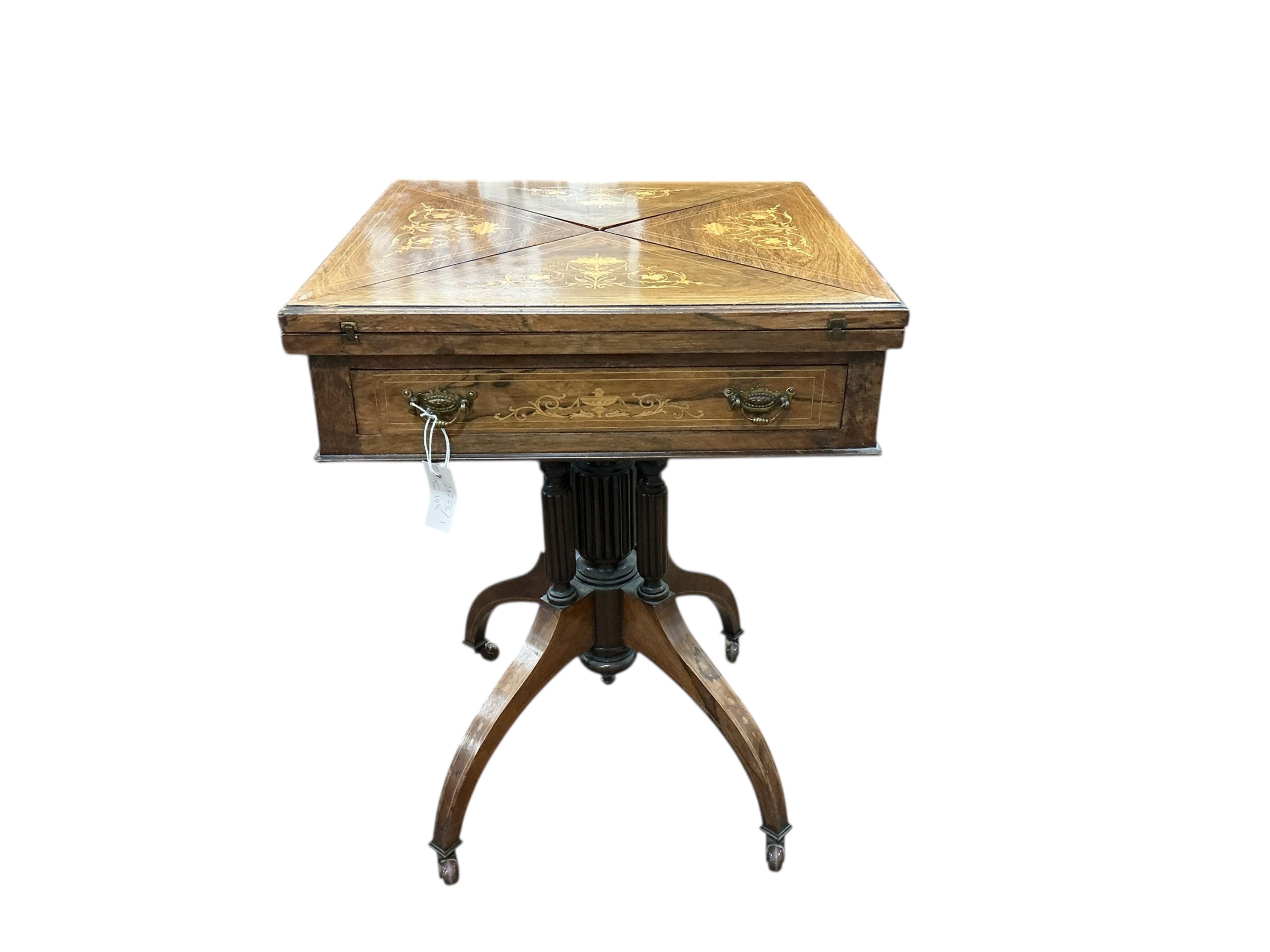 Lot 1441 , An Edwardian inlaid rosewood envelope card table, width 55cm, depth 55cm, height 73cm