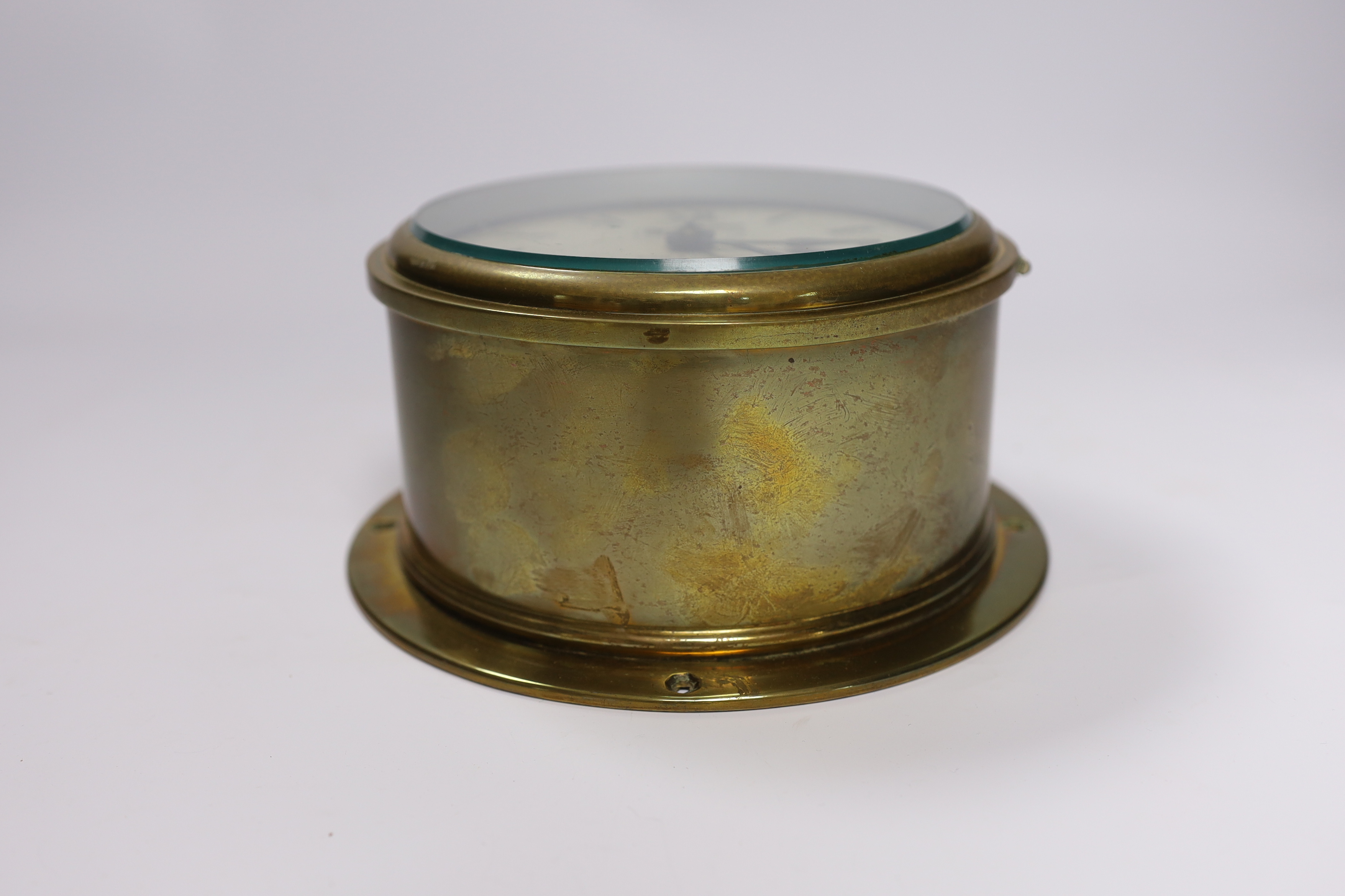 A brass ship's bulkhead timepiece, by Smith & Chalmers, Southampton, base plate 19.5cm diameter