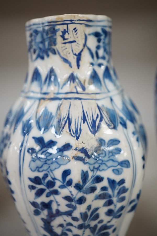 A Chinese Kangxi blue and white vase and a 19th century blue and white vase, largest 26cm high