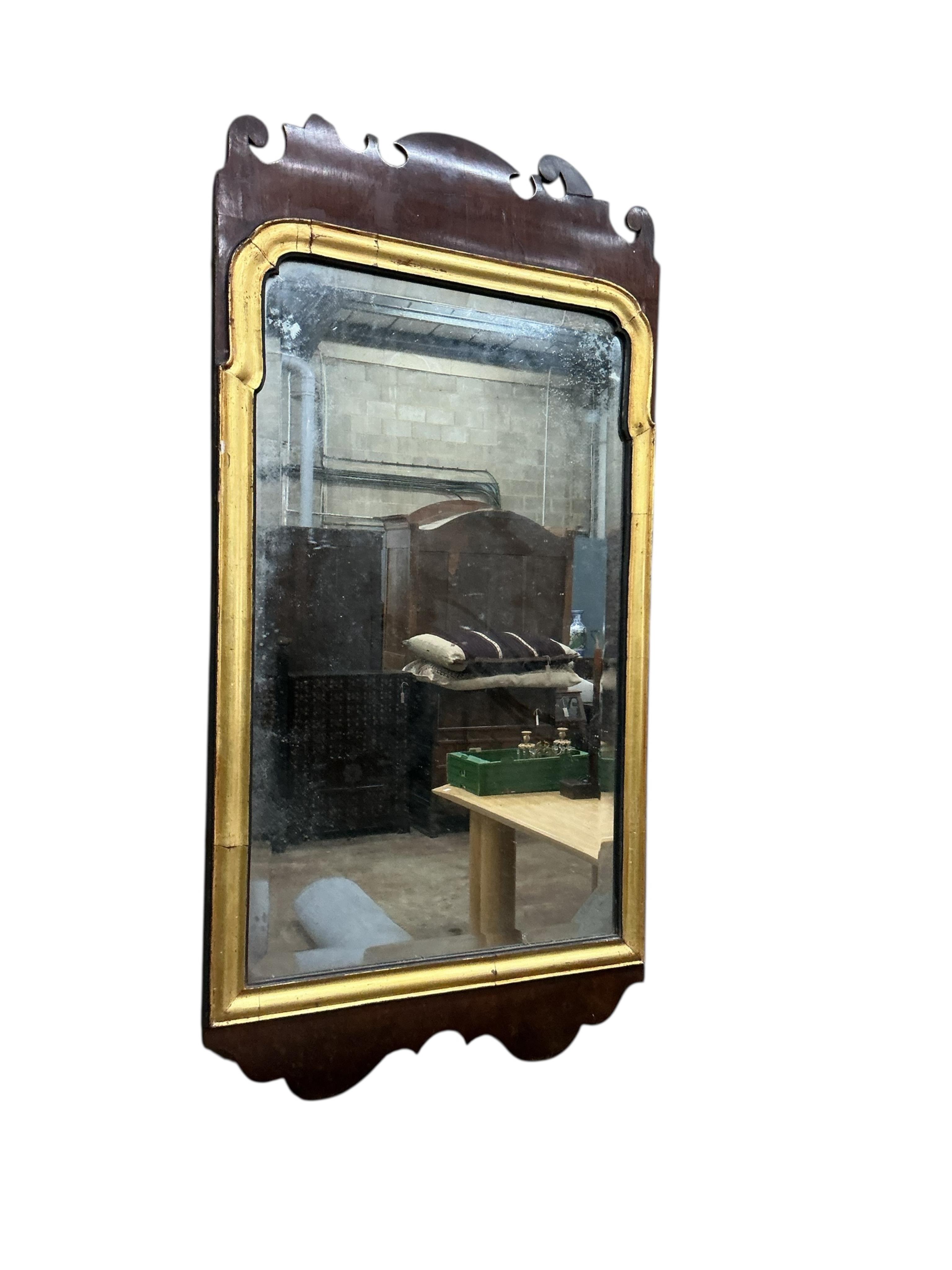 A Georgian mahogany fret cut mirror, width 42cm, height 85cm