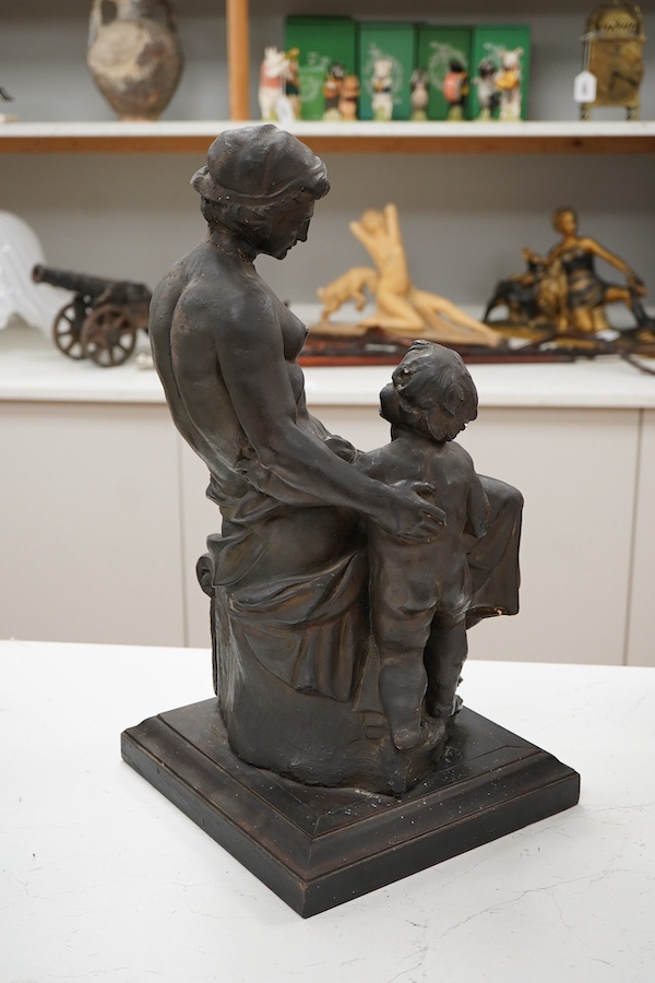 Lot 1426 , A bronzed spelter and plaster model of mother and child, 47high