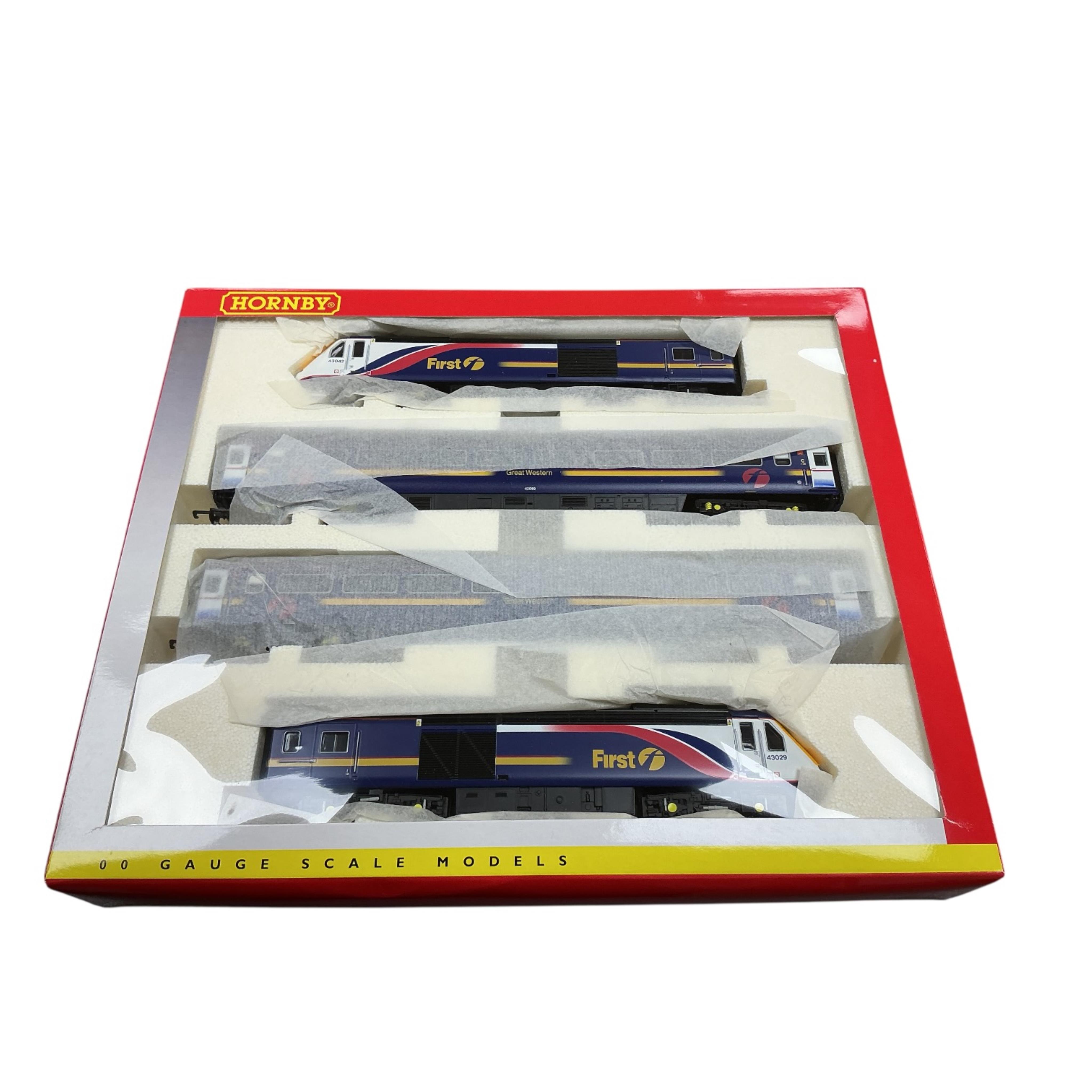 Two boxed Hornby Hobbies 00 gauge First Great Western HST 125 diesel train packs; R2299, power car, dummy car and two coaches, R2812 power car and dummy car